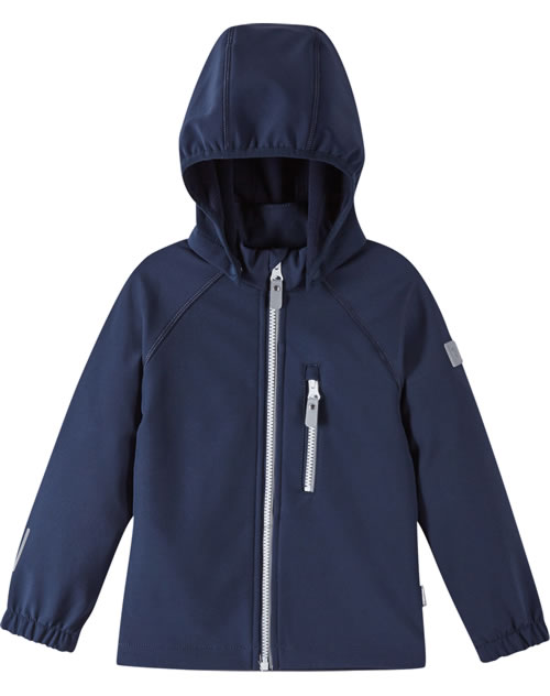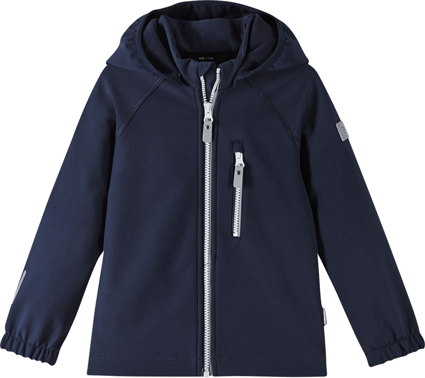 Die wasser- und winddichte Softshell-Jacke VANTTI von REIMA ist weich, leicht, flexibel und hält plötzlichen Regenschauern stand. Das weiche Fleece der Innenseite ist nicht nur angenehm auf der Haut, sondern wärmt auch schön. Eine perfekte Jacke für den Kindergarten und die Schule.