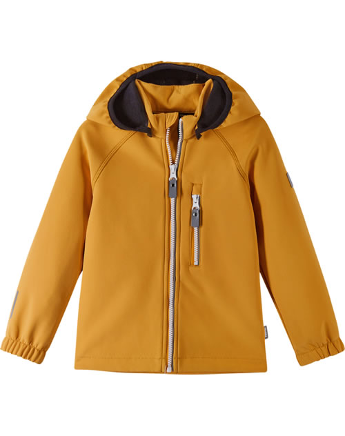 Die wasser- und winddichte Softshell-Jacke VANTTI von REIMA ist weich, leicht, flexibel und hält plötzlichen Regenschauern stand. Das weiche Fleece der Innenseite ist nicht nur angenehm auf der Haut, sondern wärmt auch schön. Eine perfekte Jacke für den Kindergarten und die Schule.