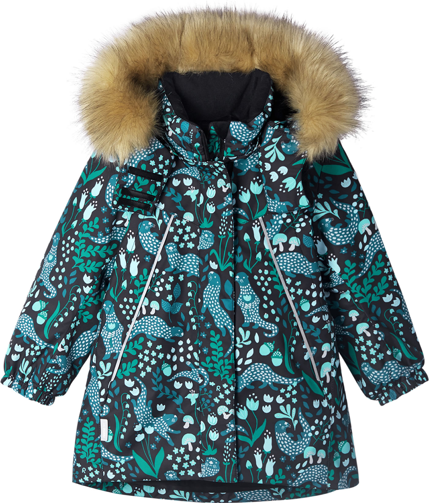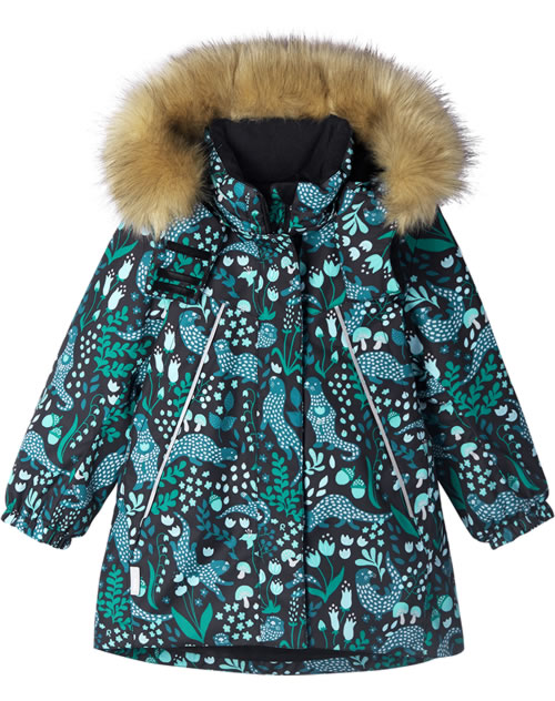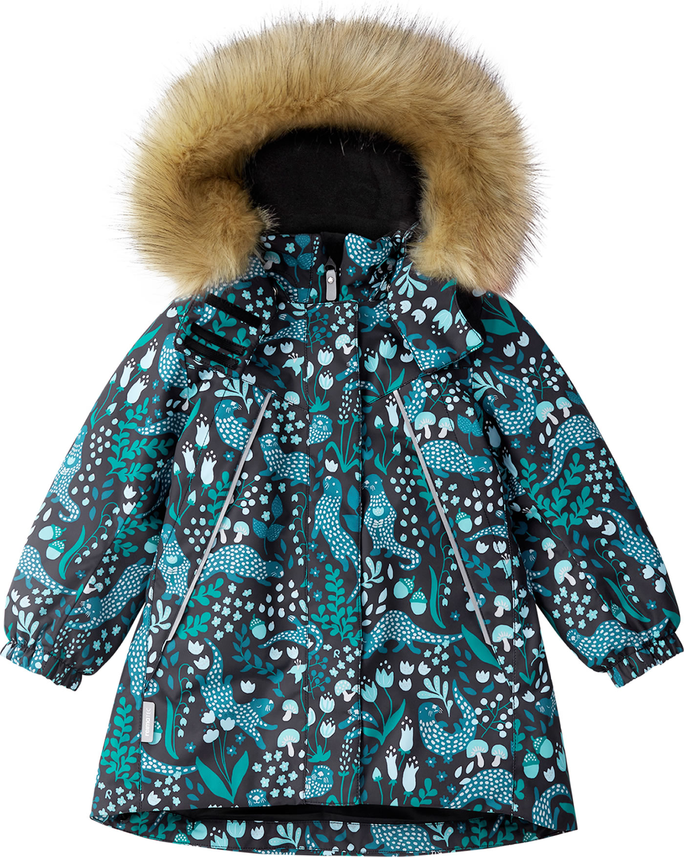 Der schöne Winter-Parka MUHVI von REIMA für Mädchen leuchtet in einem farbenfrohem und verspielten Muster. Vollständig wasser- und winddicht sowie robust und schmutzabweisend ist die warme Winterjacke ein perfekter Begleiter für die kalte Jahreszeit und für den Ski-Urlaub.
