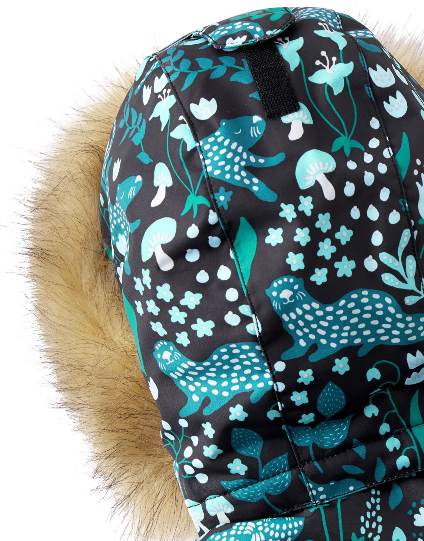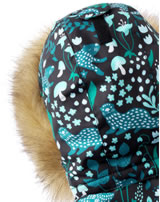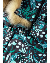 Die Kapuze lässt sich kinderleicht abknöpfen und hat einen schönen Webpelzbesatz. Der Kragen ist von innen mit weichem Fleece gefüttert und hat einen Kinnschutz. Viele reflektierende Details sorgen für eine gute Sichtbarkeit und in den Reißverschlusstaschen lassen sich wichtige Kleinigkeiten prima verstauen.