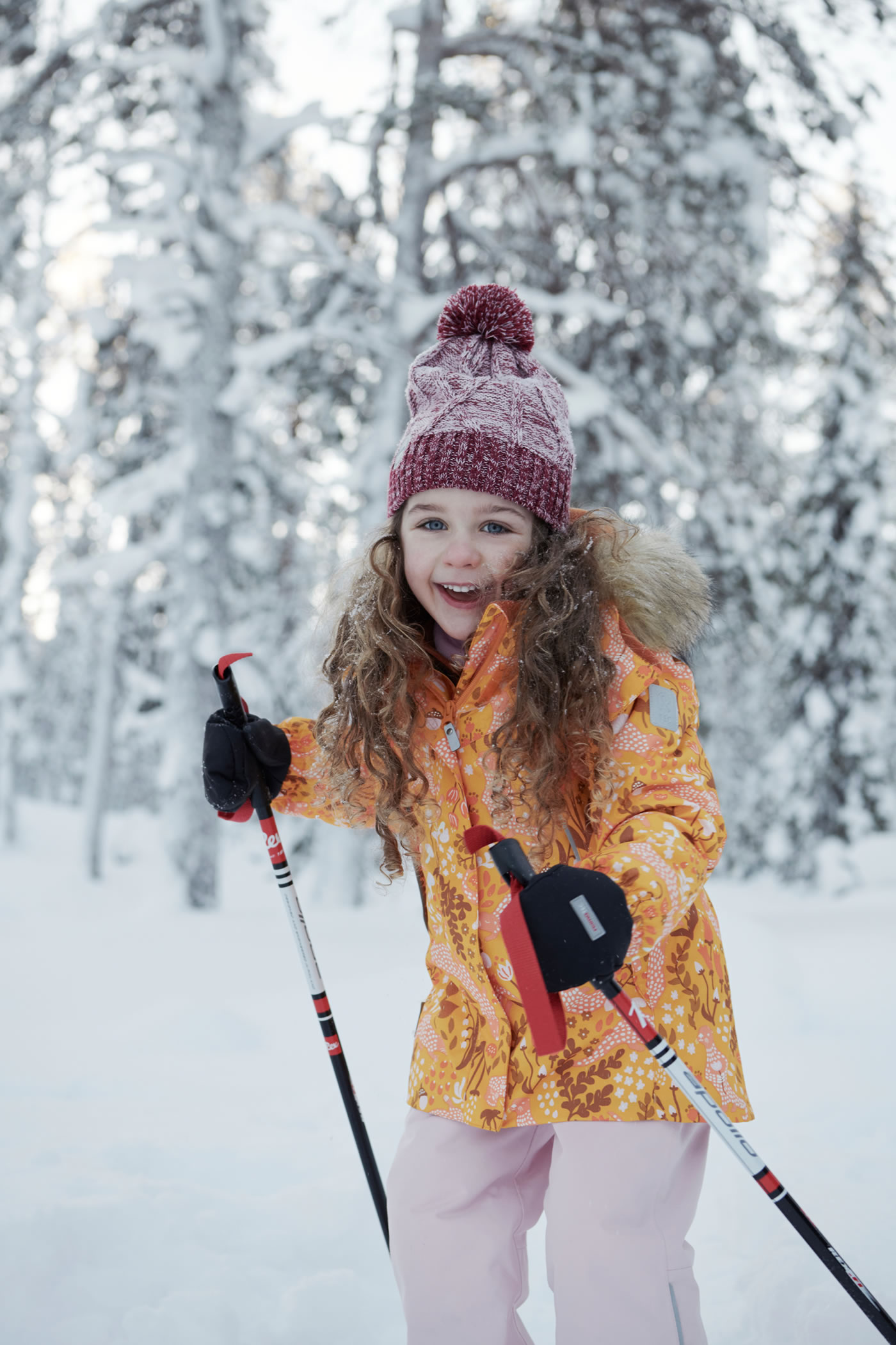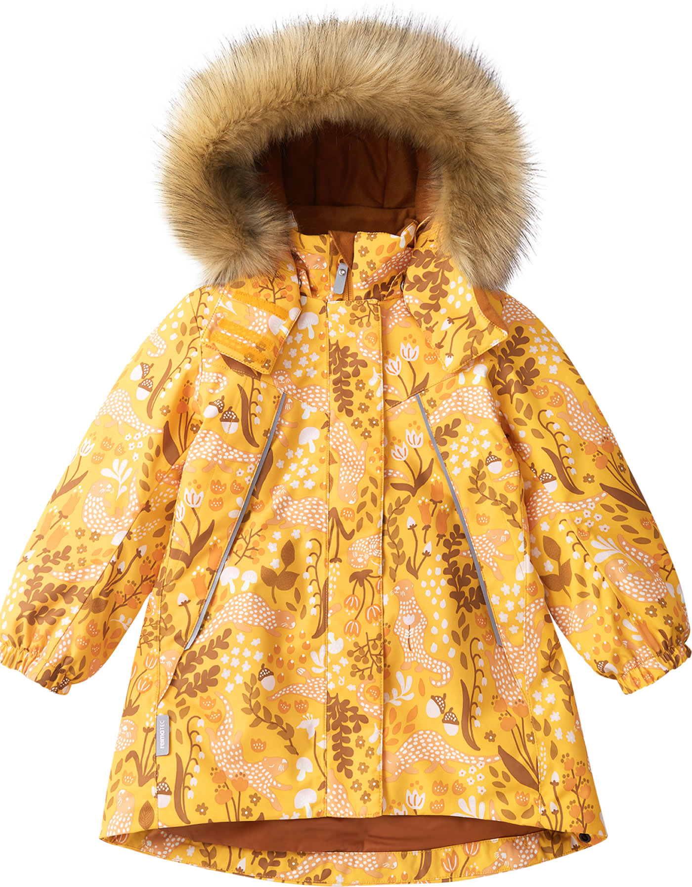 Der schöne Winter-Parka MUHVI von REIMA für Mädchen leuchtet in einem farbenfrohem und verspielten Muster. Vollständig wasser- und winddicht sowie robust und schmutzabweisend ist die warme Winterjacke ein perfekter Begleiter für die kalte Jahreszeit und für den Ski-Urlaub.