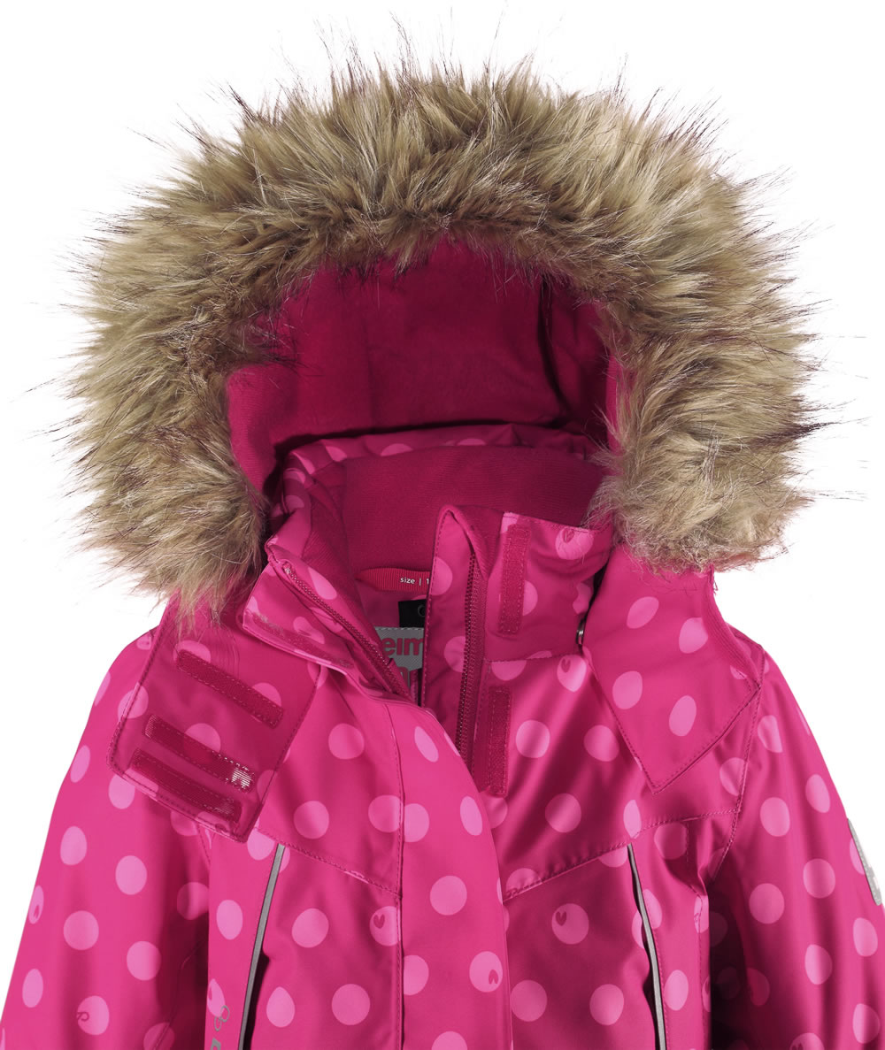 Die Wasser- und Schmutzabweisende Winterjacke MUHVI von REIMA für Mädchen ist der ideale Begleiter für Aktivitäten im Freien. Die Kapuze mit Fell-Imitat lässt sich einfach abknöpfen. Ein Gummibündchen in der schmal geschnittenen Taille sorgt für einen guten Sitz. Die Ärmelbündchen und der Saum können individuell eingestellt werden. Alle Nähte der hübschen Jacke sind wasserdicht versiegelt. Viele reflektierdene Details sorgen dafür, dass die Trägerin im Dunkeln gut sichtbar ist. Die Reißverschlusstaschen bieten viel Platz für Kleinigkeiten.