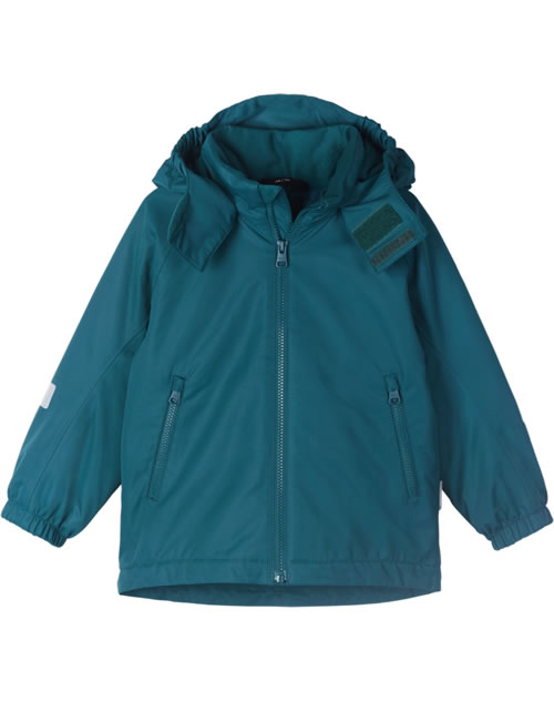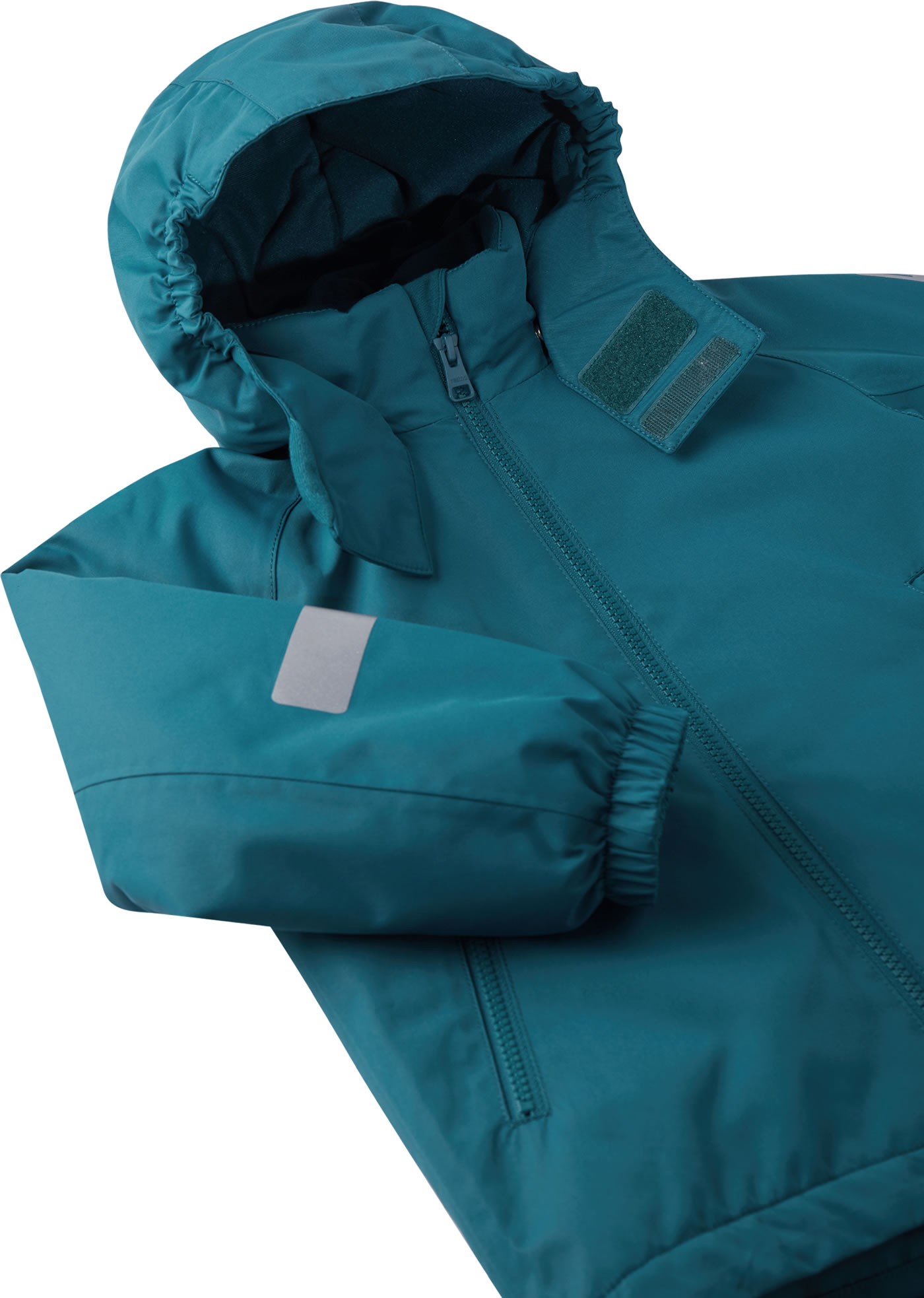Die wasser- und schmutzabweisende Winterjacke REILI von REIMA für Kinder ist der ideale Begleiter für Aktivitäten im Freien. Die Kapuze lässt sich einfach abknöpfen. Die Ärmel haben ein Gummibündchen und der Saum kann durch einen Tunnelzug individuell eingestellt werden. Alle Nähte der gerade geschnittenen Jacke sind wasserdicht versiegelt. Viele reflektierende Details sorgen dafür, dass der Träger im Dunkeln gut sichtbar ist. Die Reißverschlusstaschen bieten viel Platz für Kleinigkeiten.
