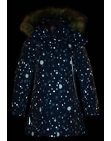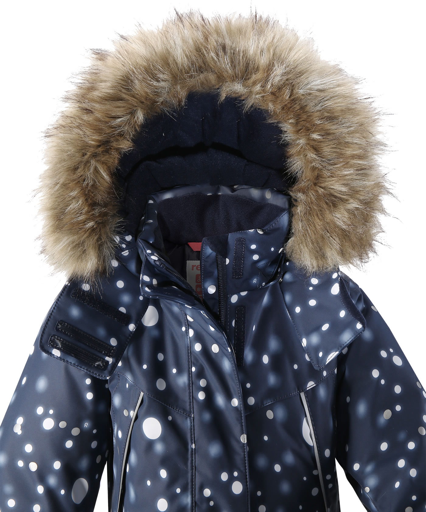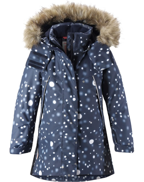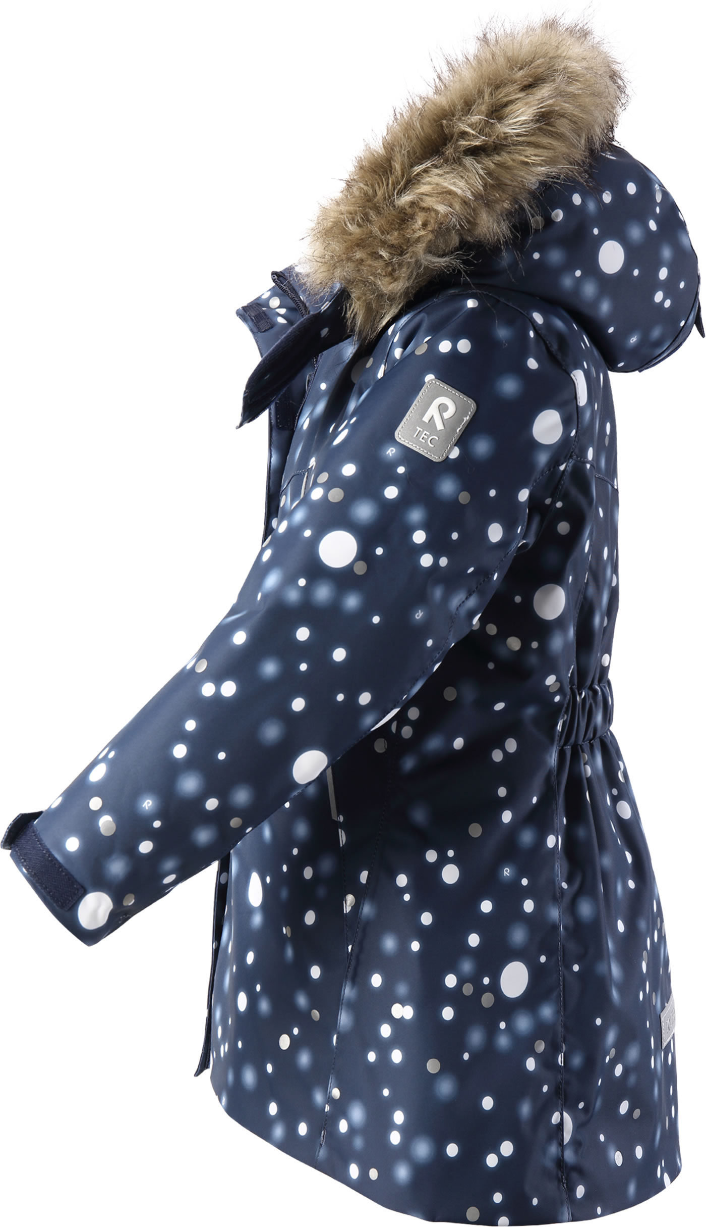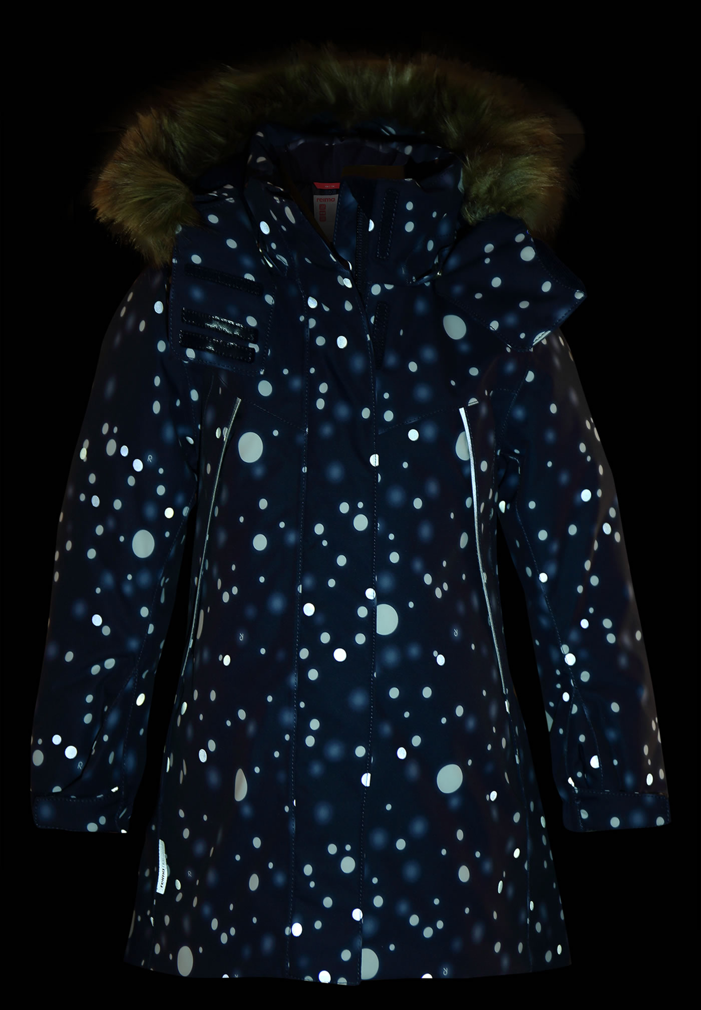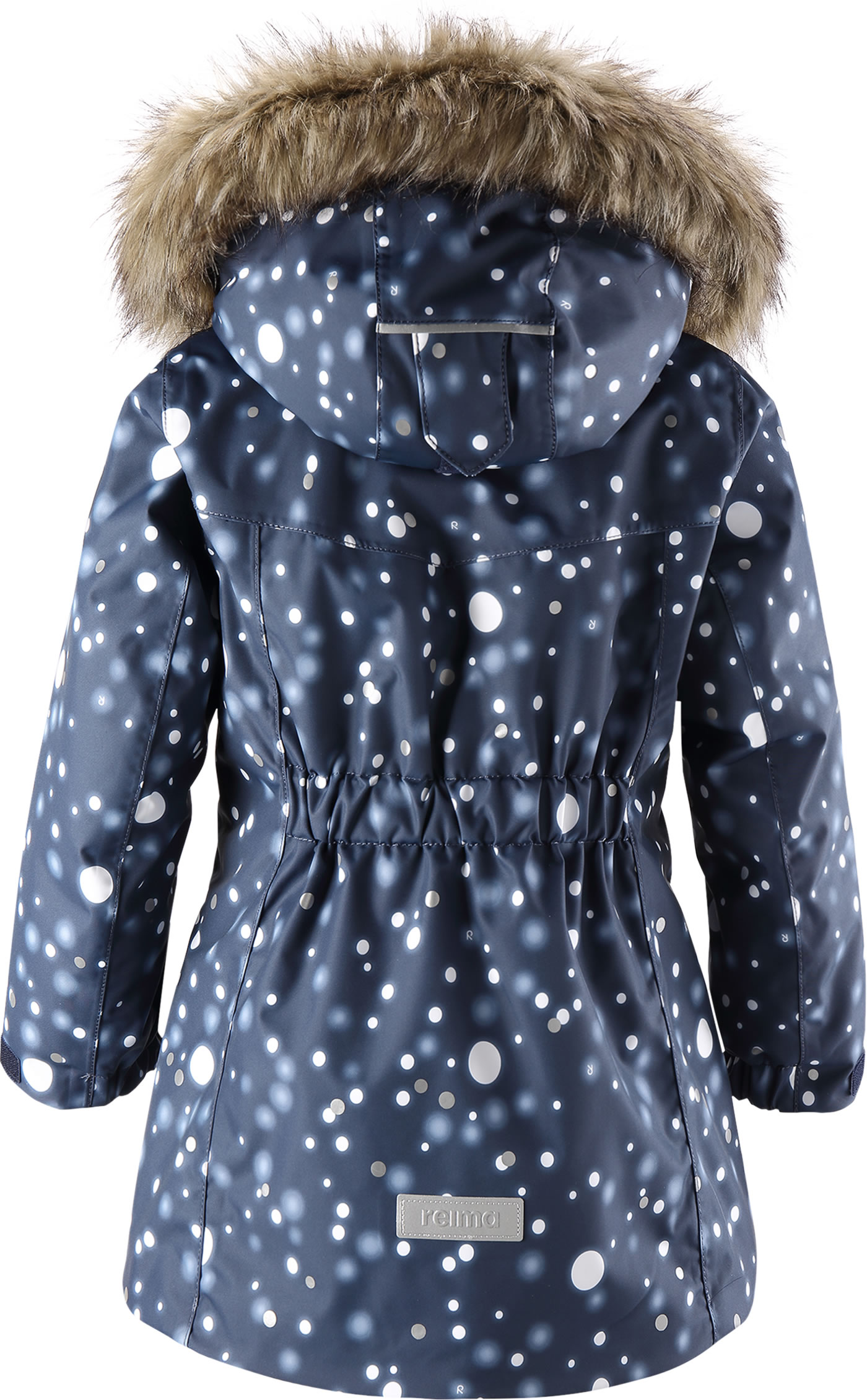 Die wasser- und schmutzabweisende Winterjacke SILDA von REIMA für Mädchen ist der ideale Begleiter für Aktivitäten im Freien. Die Kapuze mit Webpelz-Besatz lässt sich einfach abknöpfen. Ein Gummibündchen in der schmal geschnittenen Taille sorgt für einen guten Sitz. Die Ärmelbündchen und der Saum können individuell eingestellt werden. Alle Nähte der hübschen Jacke sind wasserdicht versiegelt. Viele reflektierdene Details sorgen dafür, dass die Trägerin im Dunkeln gut sichtbar ist. Die Reißverschlusstaschen bieten viel Platz für Kleinigkeiten.