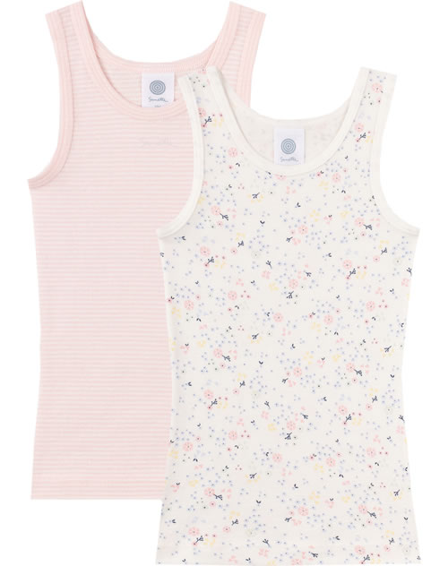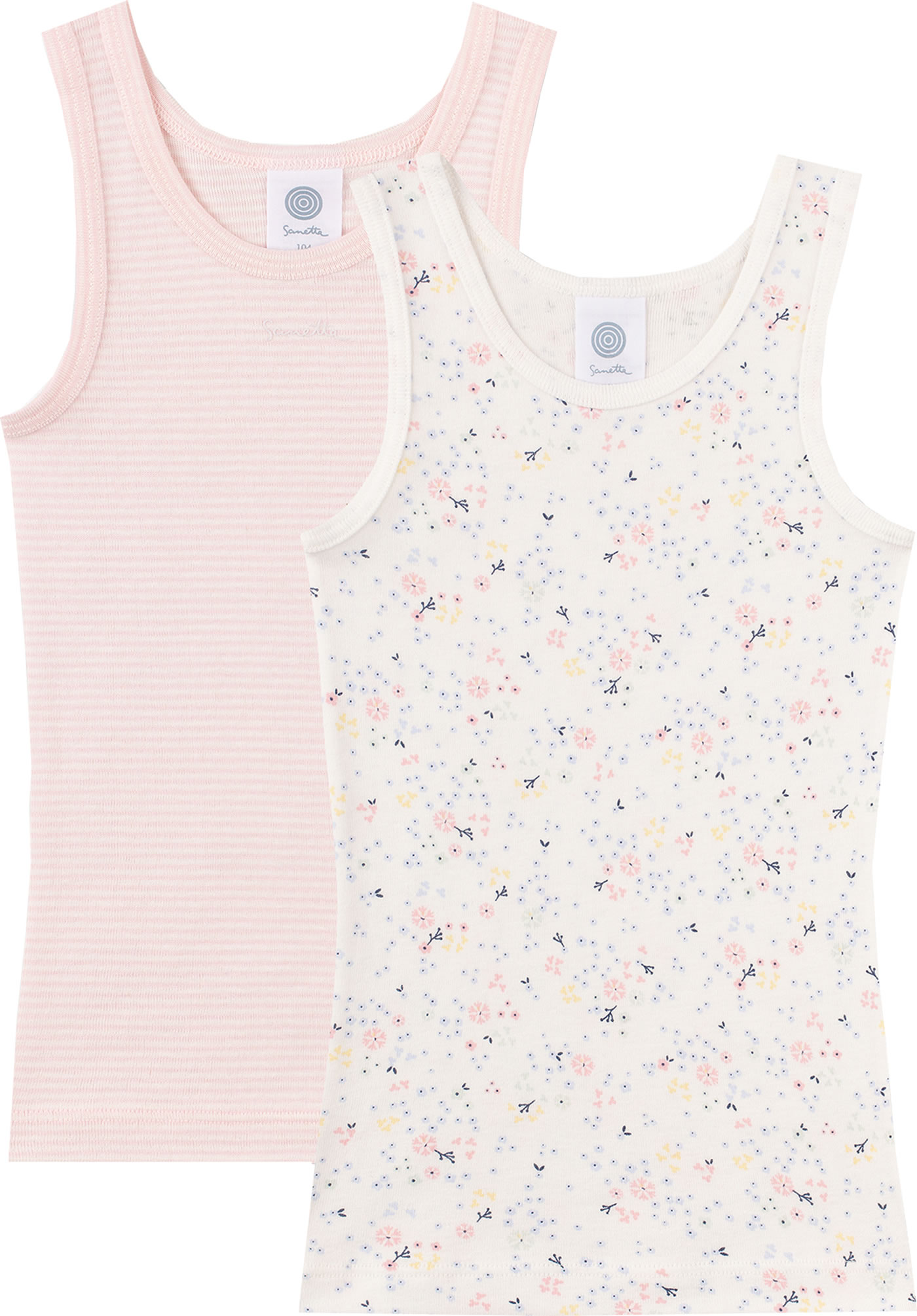 Sanetta 2-er Set Mädchen Unterhemd ärmellos BLUMEN broken white