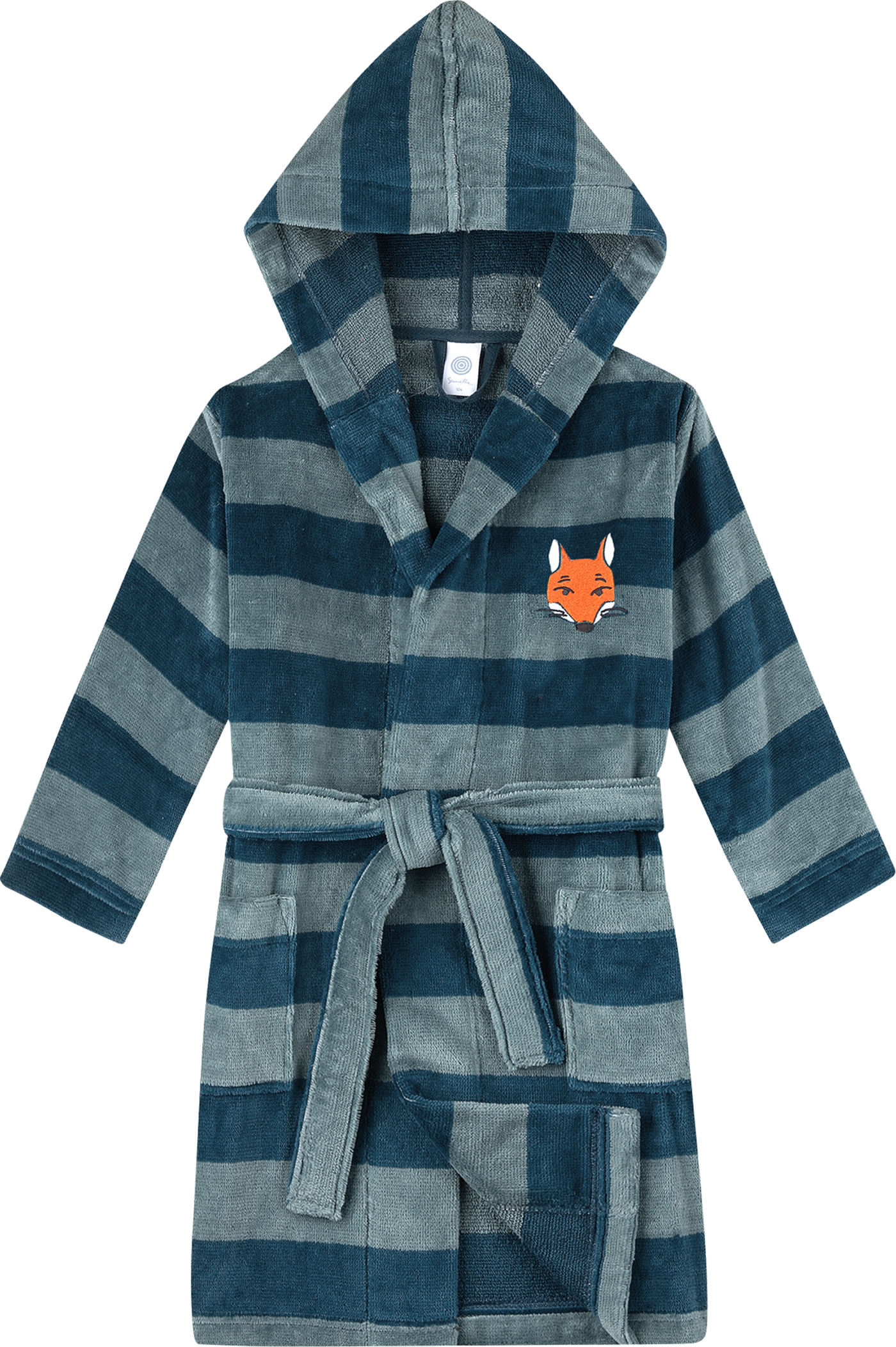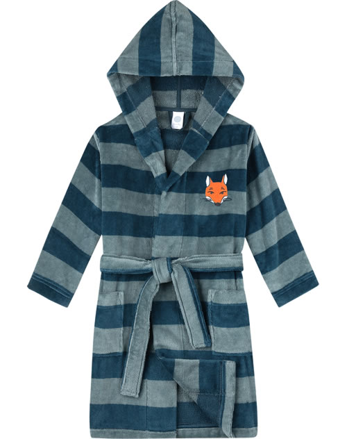 Schöner Bademantel in angenehmer und weicher Frottee-Qualität mit Kapuze von SANETTA für Jungen. Auf der Vorderseite befinden sich zwei große Taschen. Ein tolles Detail ist die freche Fuchs-Applikation an der linken Brustseite. Schließen lässt sich der Bademantel mit einem Gürtel. Ob nach dem ausgiebigen Bad zu Hause oder nach einem Tag am Strand, dieser Bademantel ist ein toller Begleiter für Kinder.
