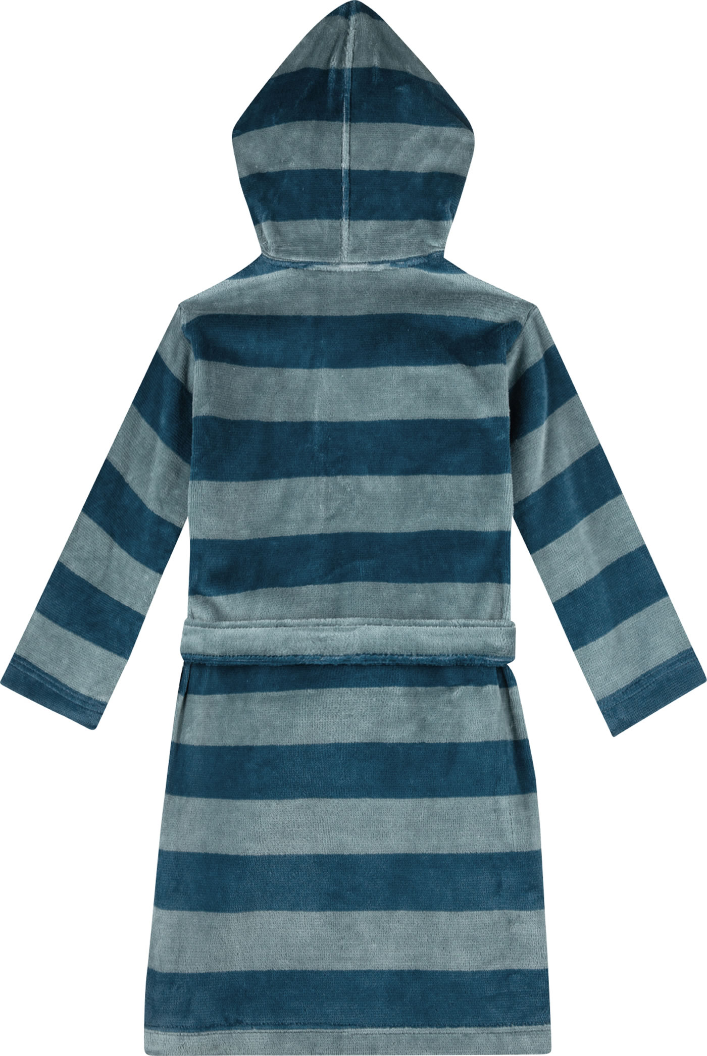 Bis zur Größe 128 kann der Bademantel zusätzlich noch mit einem Knopf im Halsbereich geschlossen werden.