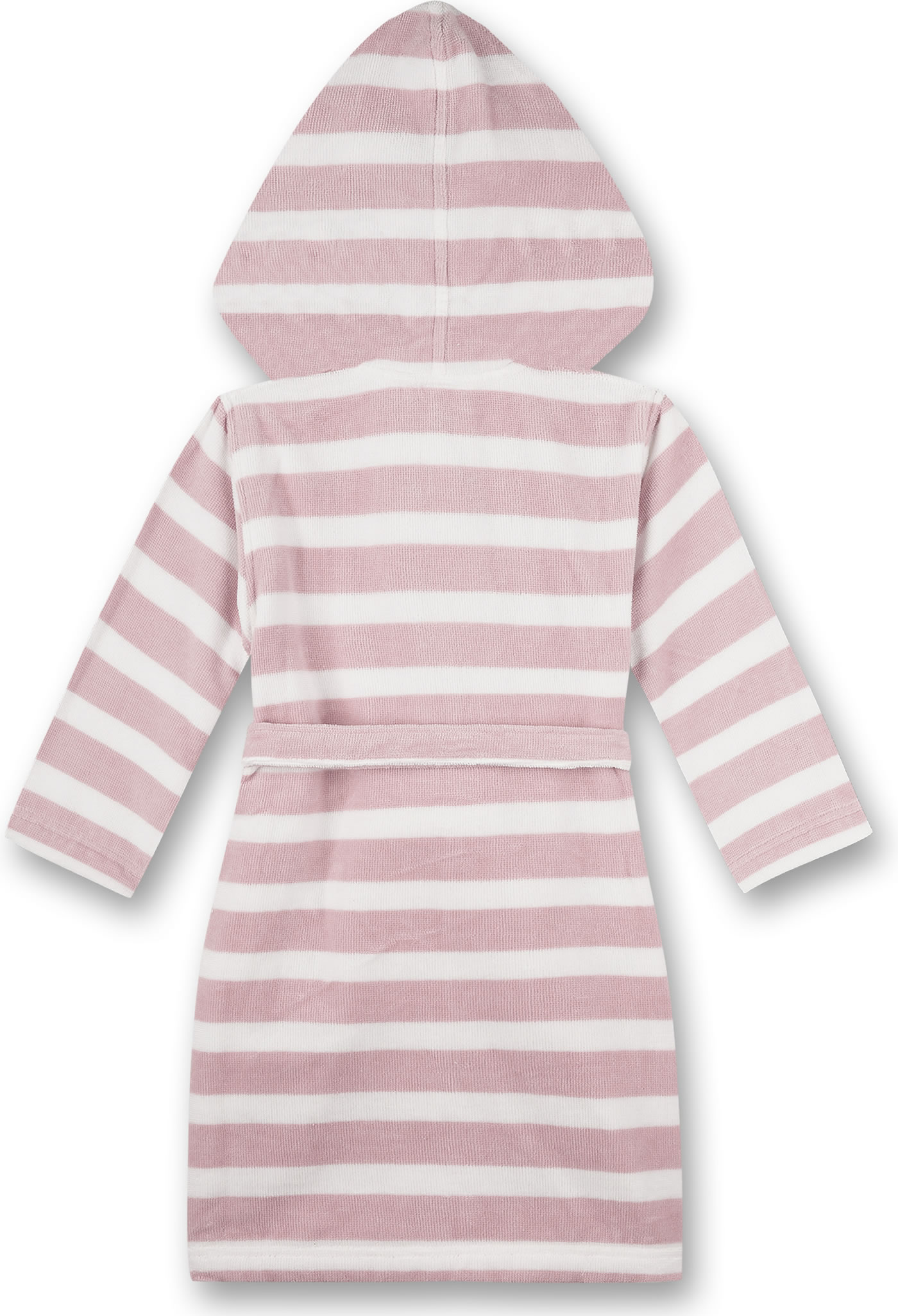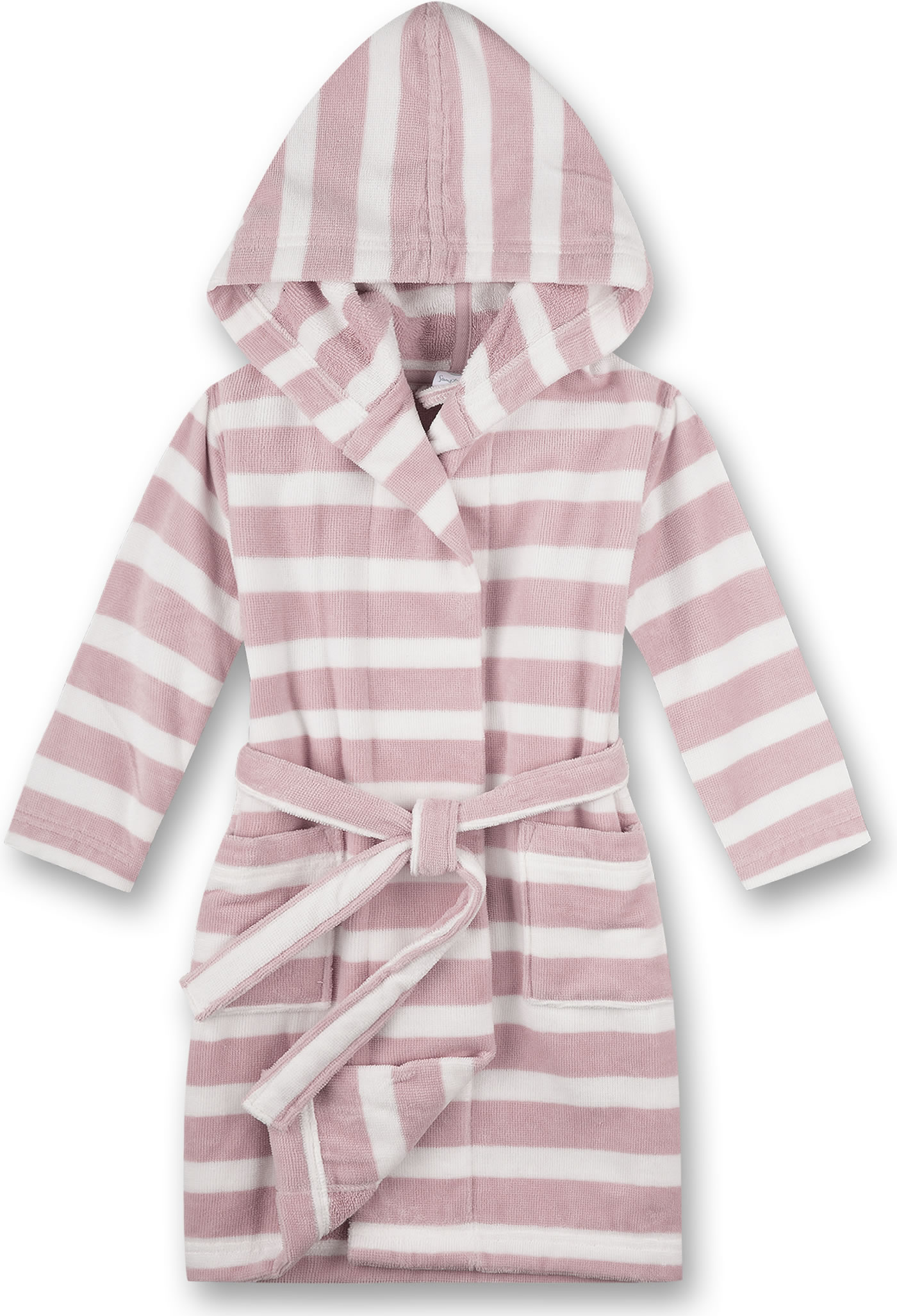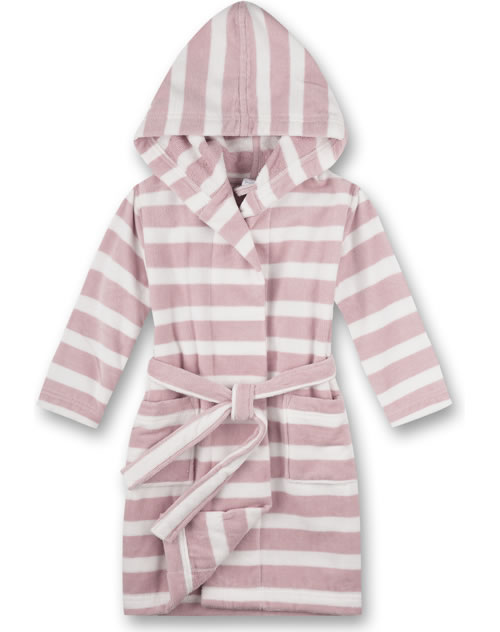 Schöner Bademantel in angenehmer und weicher Frottee-Qualität mit Kapuze von SANETTA für Mädchen. Auf der Vorderseite befinden sich zwei große Taschen. Schließen lässt sich der Bademantel in weiß und rosa gestreift mit einem Gürtel. Ob nach dem ausgiebigen Bad zu Hause oder nach einem Tag am Strand, dieser Bademantel ist ein toller Begleiter für Kinder.
