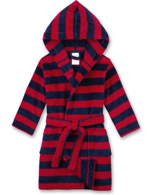 Schöner Bademantel in angenehmer und weicher Velours Frottee-Qualität mit Kapuze von SANETTA für Jungen und Mädchen. Auf der Vorderseite befinden sich zwei große Taschen. Schließen lässt sich der Bademantel in rouge mit einem Gürtel. Ob nach dem ausgiebigen Bad zu Hause oder nach einem Tag am Strand, dieser Bademantel ist ein toller Begleiter für Kinder.