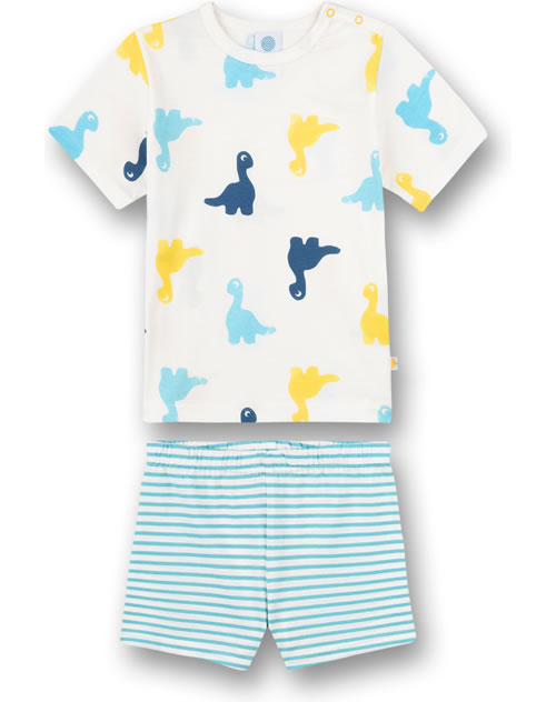 Sanetta Jungen Pyjama/Schlafanzug Dinos kurz white pebble