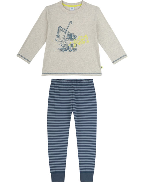 Sanetta Jungen Pyjama/Schlafanzug lang BAGGER kokos mel. 232868-22015 GOTS