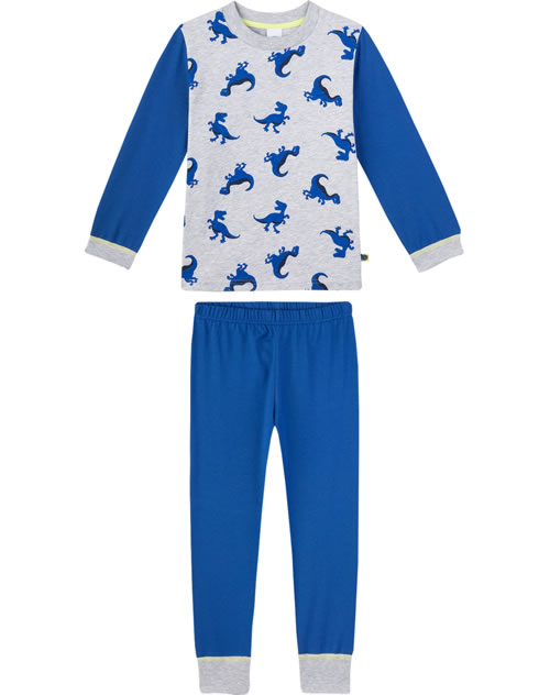 Sanetta Jungen Pyjama/Schlafanzug Langarm DINOS hellgrau/melange