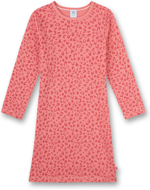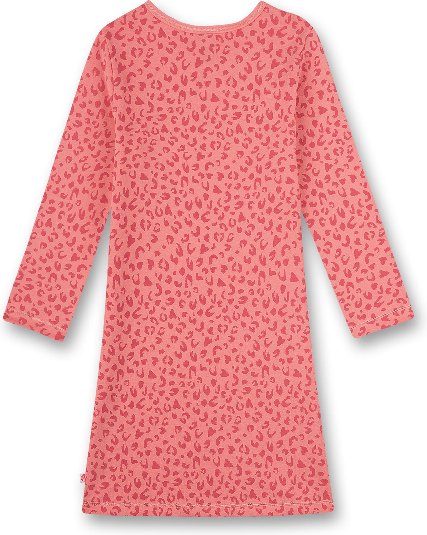 Das hübsche Langarm-Nachthemd mit mädchenhaftem Leo-Alloverprint in rosa-rot von SANETTA für Mädchen ist ein weicher Begleiter ins Land der Träume. Das Material ist eine angenehm weiche Velours-Single Qualität aus 100% GOTS zertifizierter Bio-Baumwolle.