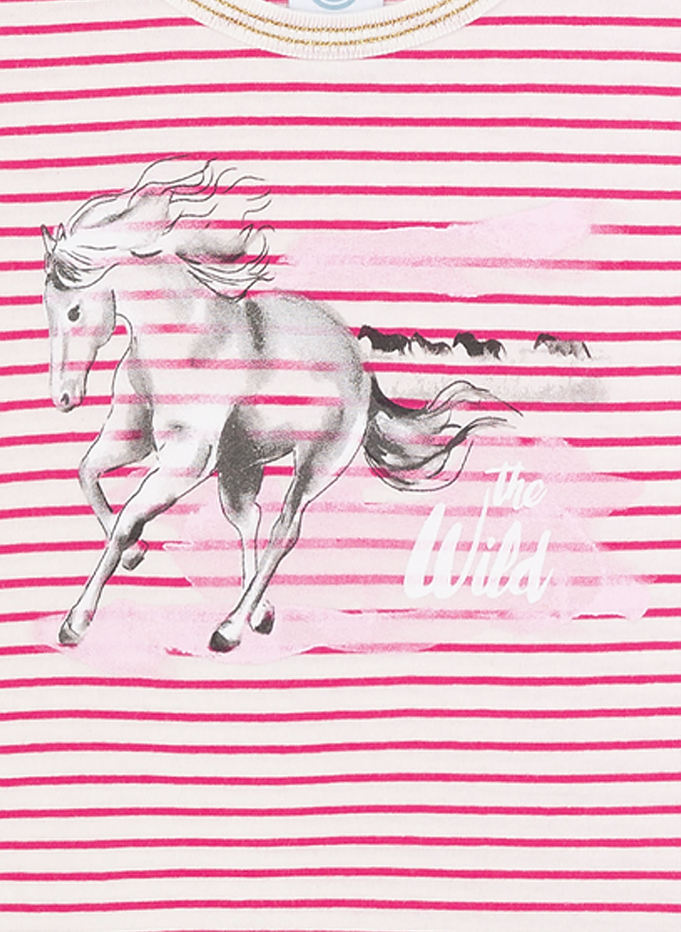 Hübscher zweiteiliger Schlafanzug für Mädchen in pink von SANETTA. Der angenehm weiche Stoff sorgt für kuschelige Stunden. Das Gummi-Bündchen am Hosenbund garantiert einen guten Sitz und das leicht elastische Material garantiert einen hohen Tragekomfort.