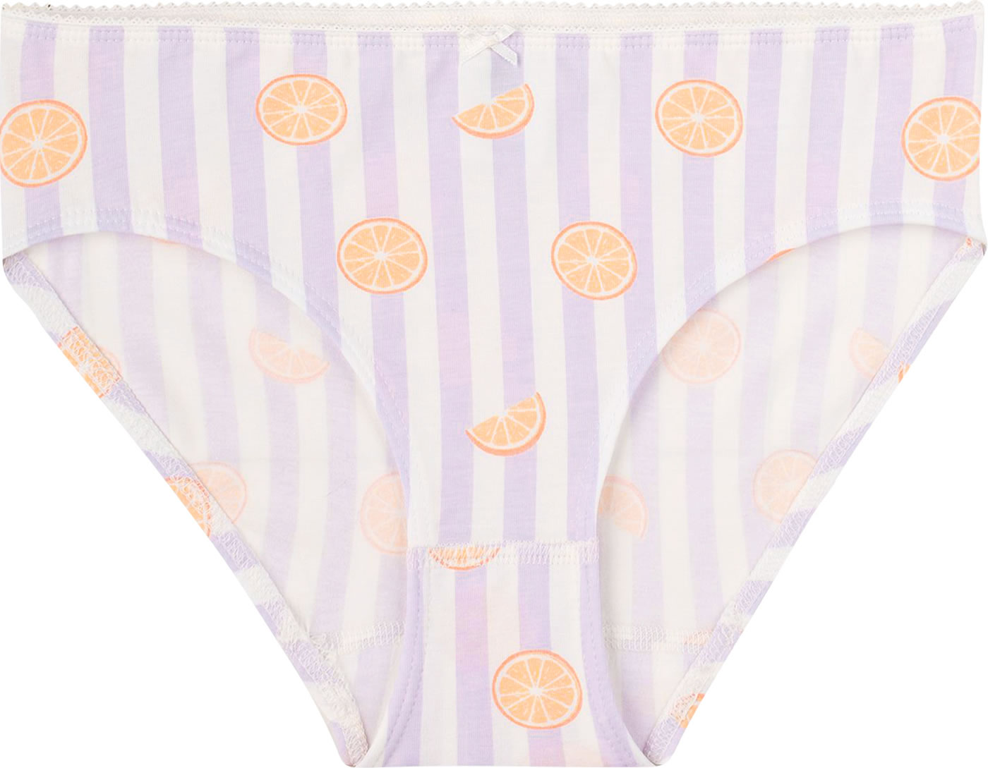 Hübsches Rio-Slip 5er Set aus Bio-Baumwolle und Elasthananteil für ein angenehmes Hautgefühl von SANETTA für Mädchen. Die hochwertige Single-Qualität und der flexible Taillenbund bieten einen hohen Tragekomfort. Das Set besteht aus Slips in lila, weiß, gestreift und mit tollem Flamingo- und Orangen-Muster. Die verspielten Slips haben eine kleine Schleife auf der Vorderseite und einen zarten Spitzenrand.
