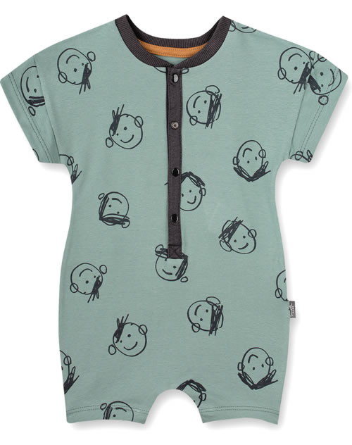 Hochwertiger Overall mit kurzen Armen und Beinen in blau von SANETTA PURE für Jungen. Der Allover-Print ist ein toller Blickfang. Auf der Vorderseite befindet sich eine Druckknopfleiste in Kontrastfarbe. Der versteckte Beinverschluss erleichtert das An- und Ausziehen. Die leicht elastische Single-Jersey Qualität aus zertifizierter Bio-Baumwolle sorgen für einen besonders hohen Tragekomfort. Praktisch für die kommenden warmen Tage ist der kurze Overall in modischer Schnittform und mit leicht überschnittenen Schultern.
