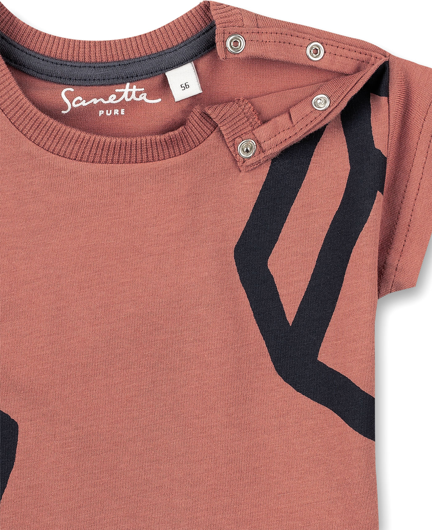 Tolles Kurzam-Shirt in orange von SANETTE PURE für Jungen. Ein Blickfang ist der Würfel-Druck in Kontrastfarben auf der Vorderseite. Der praktische Schulterverschluss sorgt für ein kindeleichtes An- und Ausziehen.