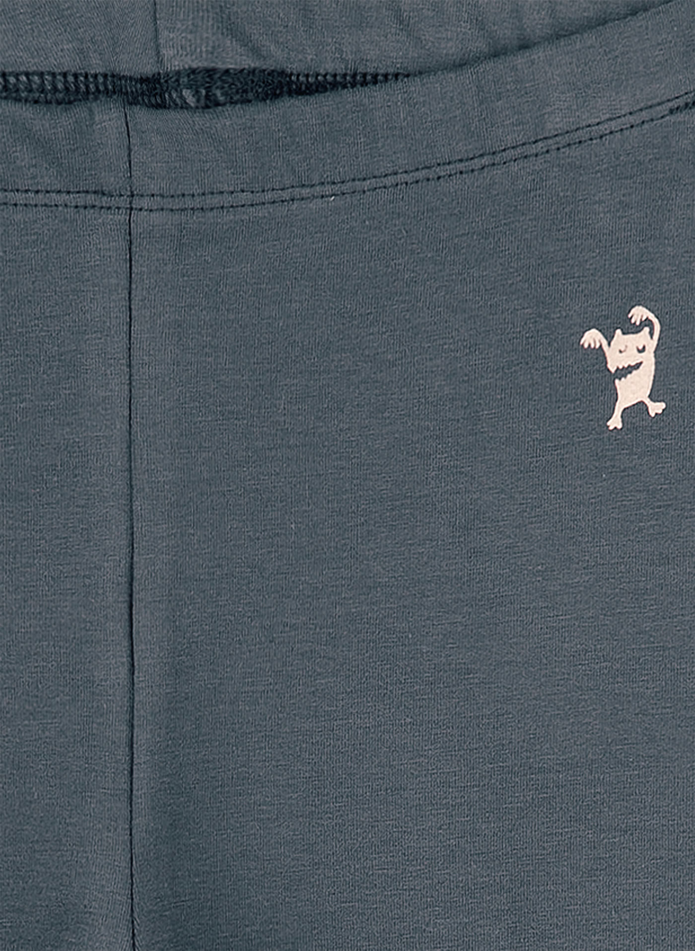 Klassische Leggings in Single-Jersey Qualität aus zertifizierter Bio-Baumwolle von SANETTA PURE für Mädchen. Auf der linken Seite befindet sich ein kleiner Monster-Print. Der Taillenbund mit integriertem Gummi bietet einen hohen Tragekomfort ohne zu verrutschen. Die Leggings lässt sich prima zu vielen Outfits kombinieren.