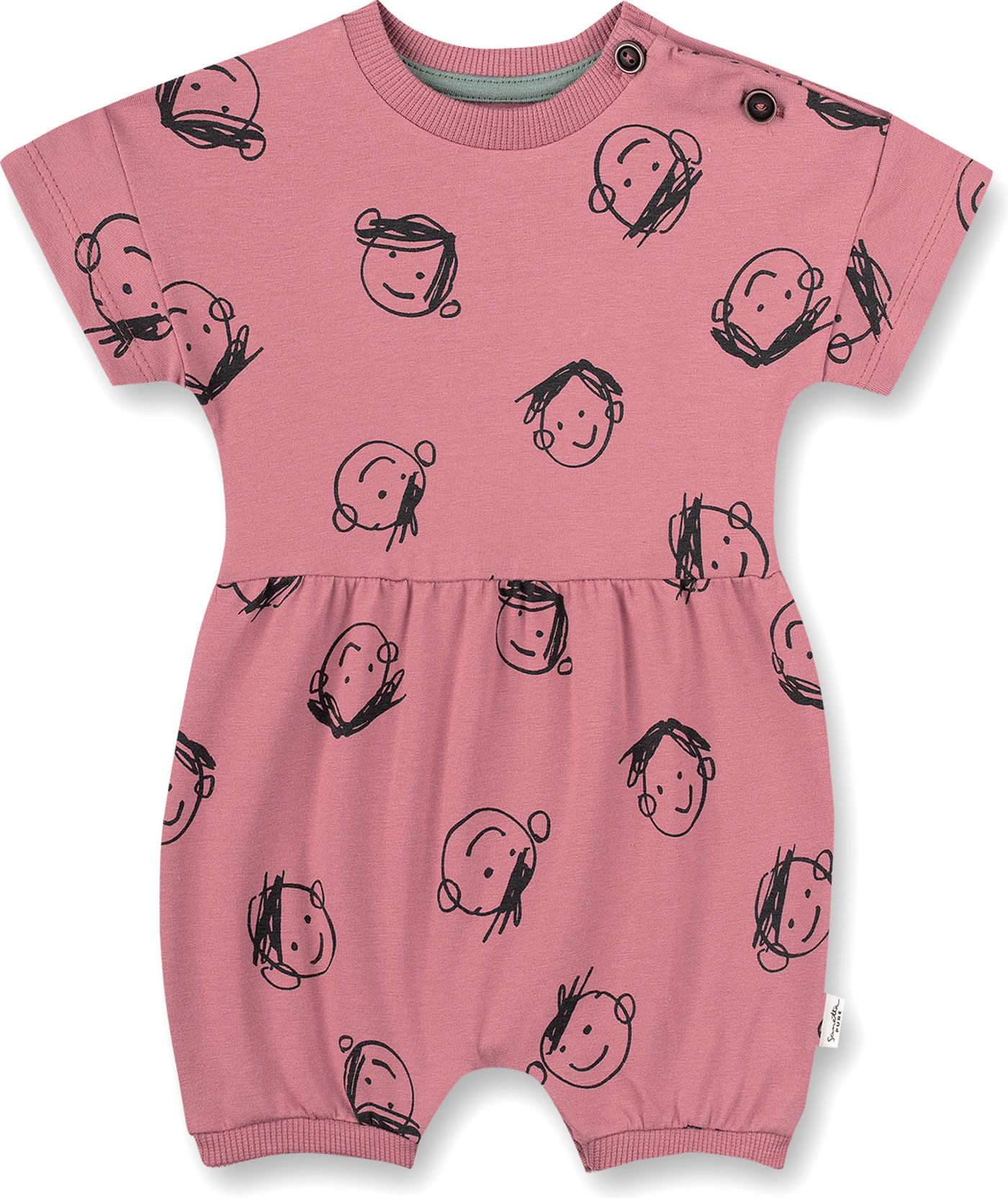 Hochwertiger Overall mit kurzen Armen und Beinen in rosa von SANETTA PURE für Mädchen. Der Allover-Print ist ein toller Blickfang. Auf der linken Schulter befindet sich eine Knopfleiste in Kontrastfarbe. Der versteckte Beinverschluss erleichtert das An- und Ausziehen. Die leicht elastische Single-Jersey Qualität aus zertifizierter Bio-Baumwolle sorgen für einen besonders hohen Tragekomfort. Praktisch für die kommenden warmen Tage ist der kurze Overall in modischer Schnittform und mit leicht überschnittenen Schultern.