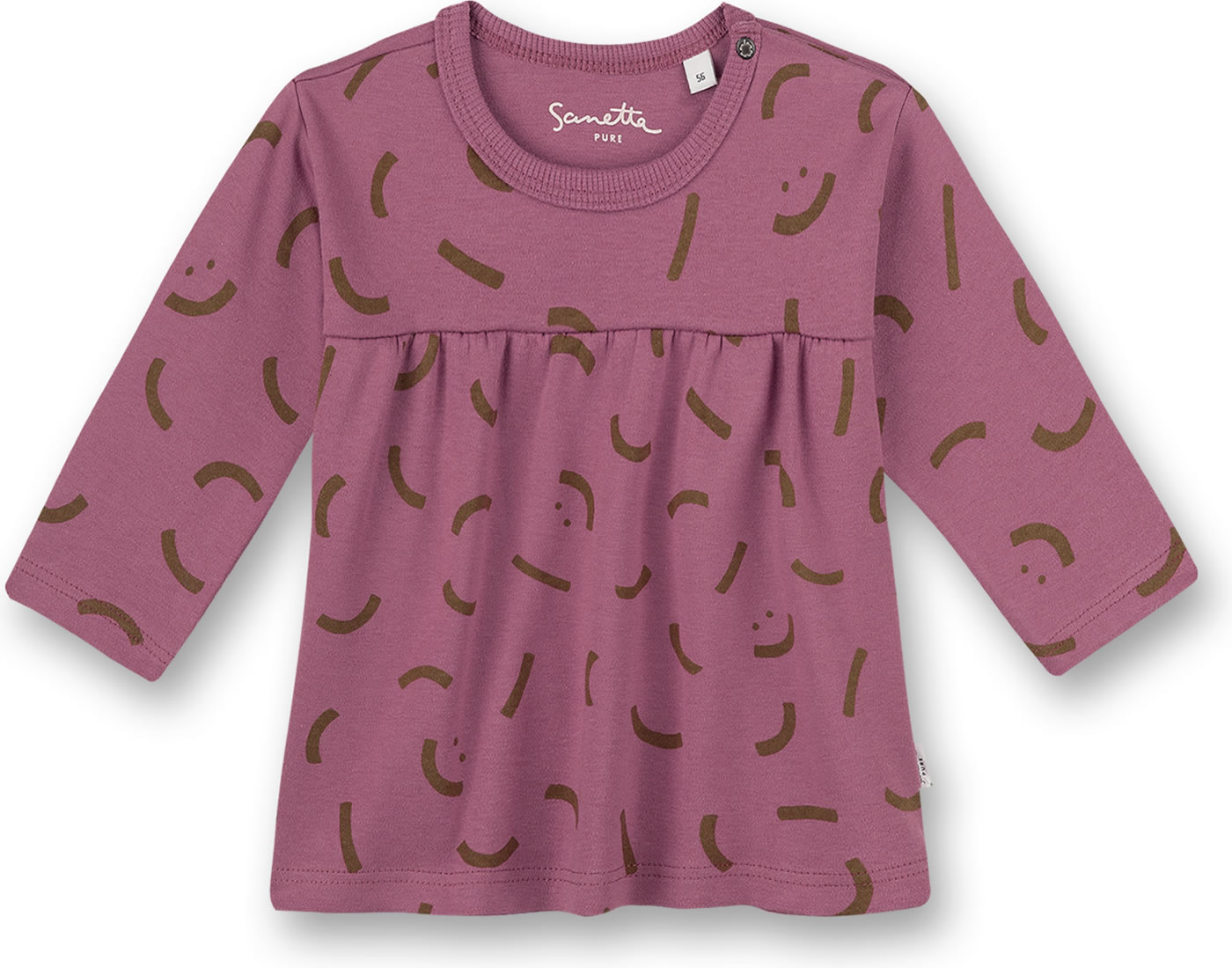 Das hübsche Langam-Shirt von SANETTA PURE für Mädchen in rosa hat ein lustiges Allover-Streumuster. Auf Brusthöhe befindet sich eine Teilungsnaht mit leichter Raffung. Aus hochwertiger Interlock-Qualität und 100% Bio-Baumwolle sorgt das Material für einen hohen Tragekomfort. Bis Größe 92 erleichtert der Schulterverschluss das An- und Ausziehen.