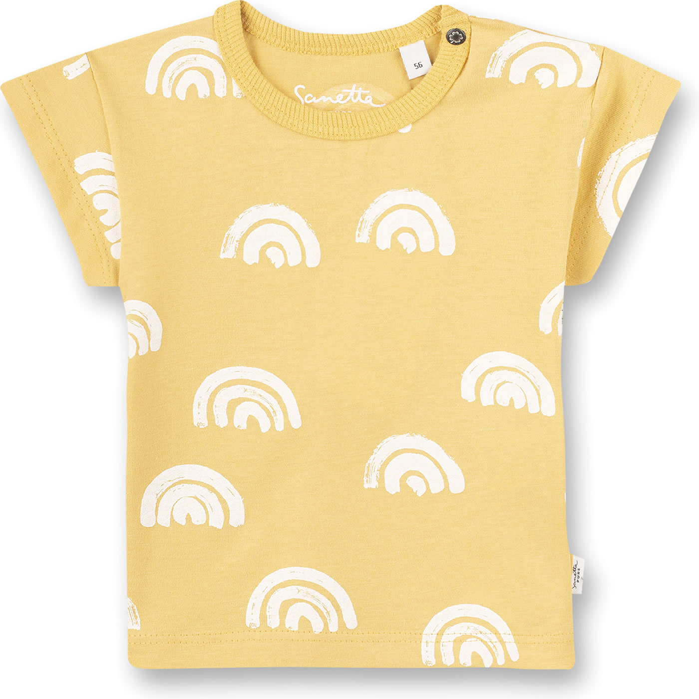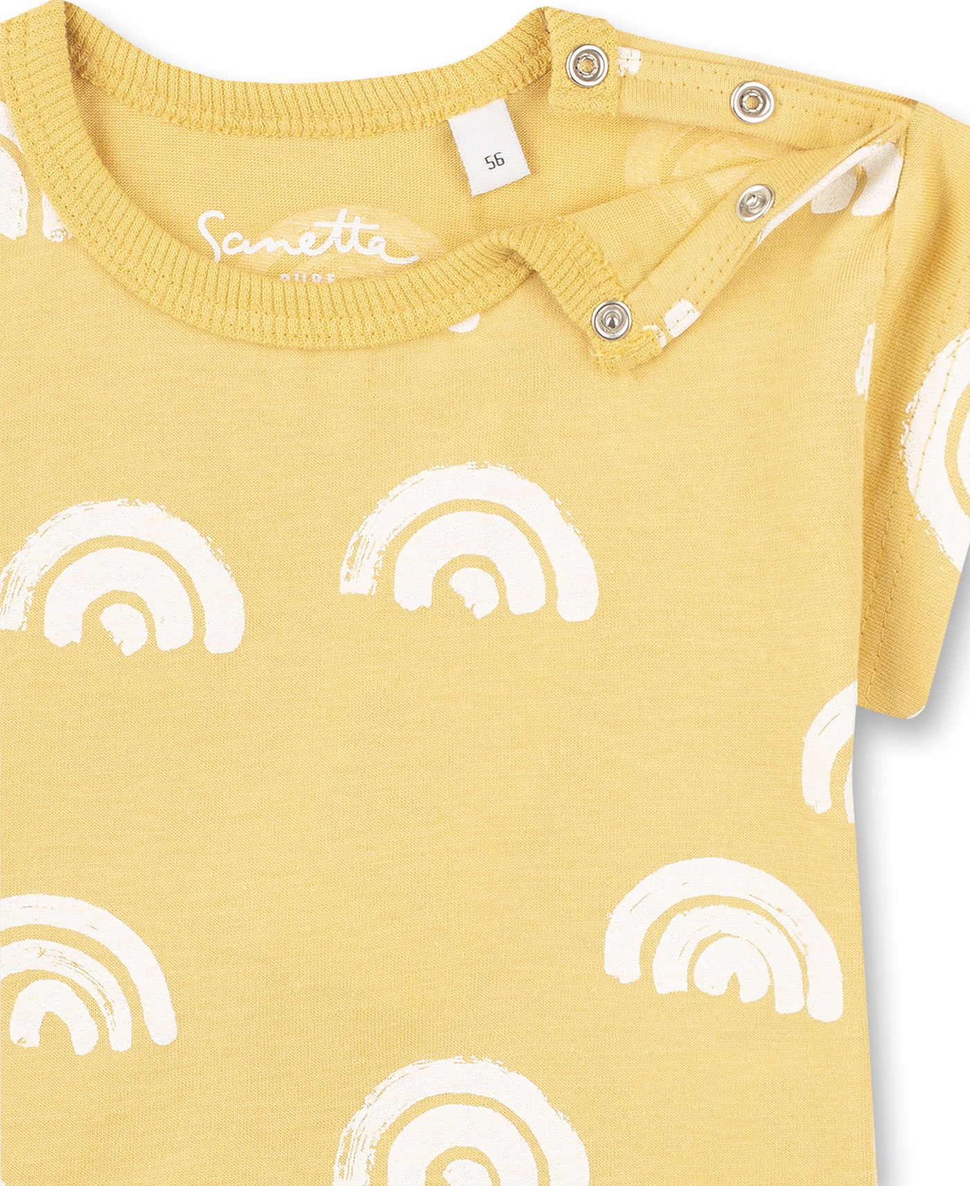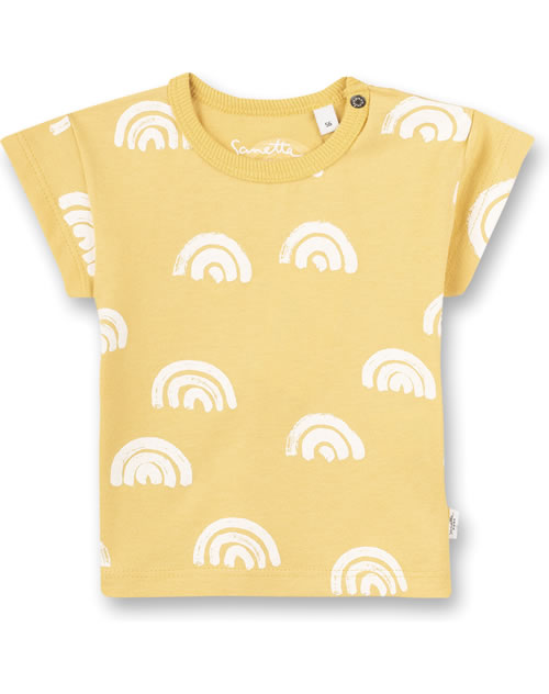 Sommerliches Kurzarm-Shirt in gelb mit schönem Allover-Print von SANETTA PURE für Mädchen. Das gemütliche T-Shirt aus 100 % Bio-Baumwolle ist ein tolles Kleidungsstück für die warmen Tage des Jahres, das sich prima kombinieren lässt. Druckknöpfe an der linken Schulter erleichtern das An- und Ausziehen.