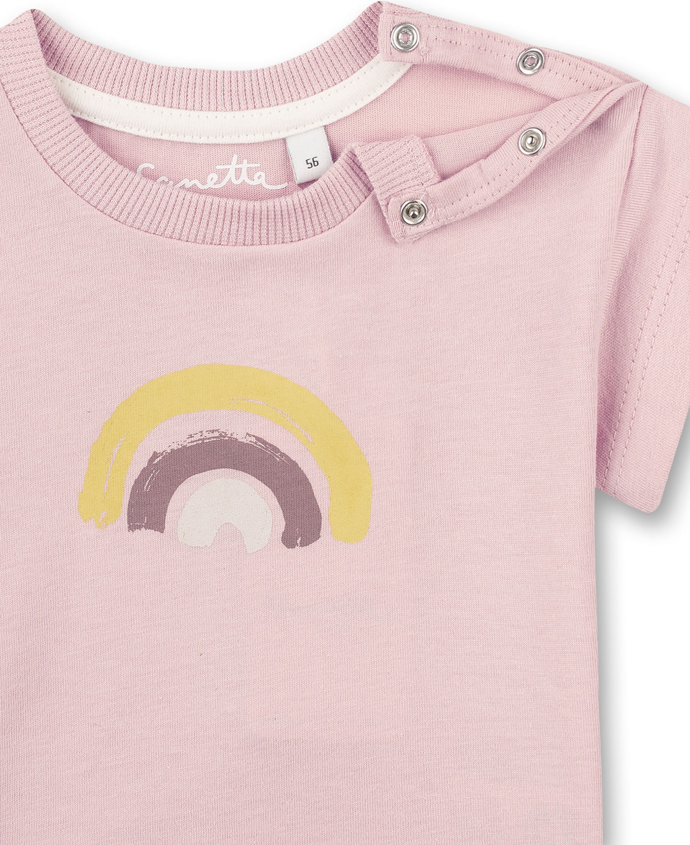 Sommerliches Kurzarm-Shirt in rosa mit schönem Print auf der Brust von SANETTA PURE für Mädchen. Das gemütliche T-Shirt aus 100 % Bio-Baumwolle ist ein tolles Kleidungsstück für die warmen Tage des Jahres, das sich prima kombinieren lässt. Druckknöpfe an der linken Schulter erleichtern das An- und Ausziehen.