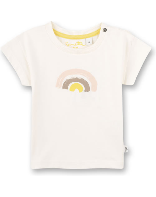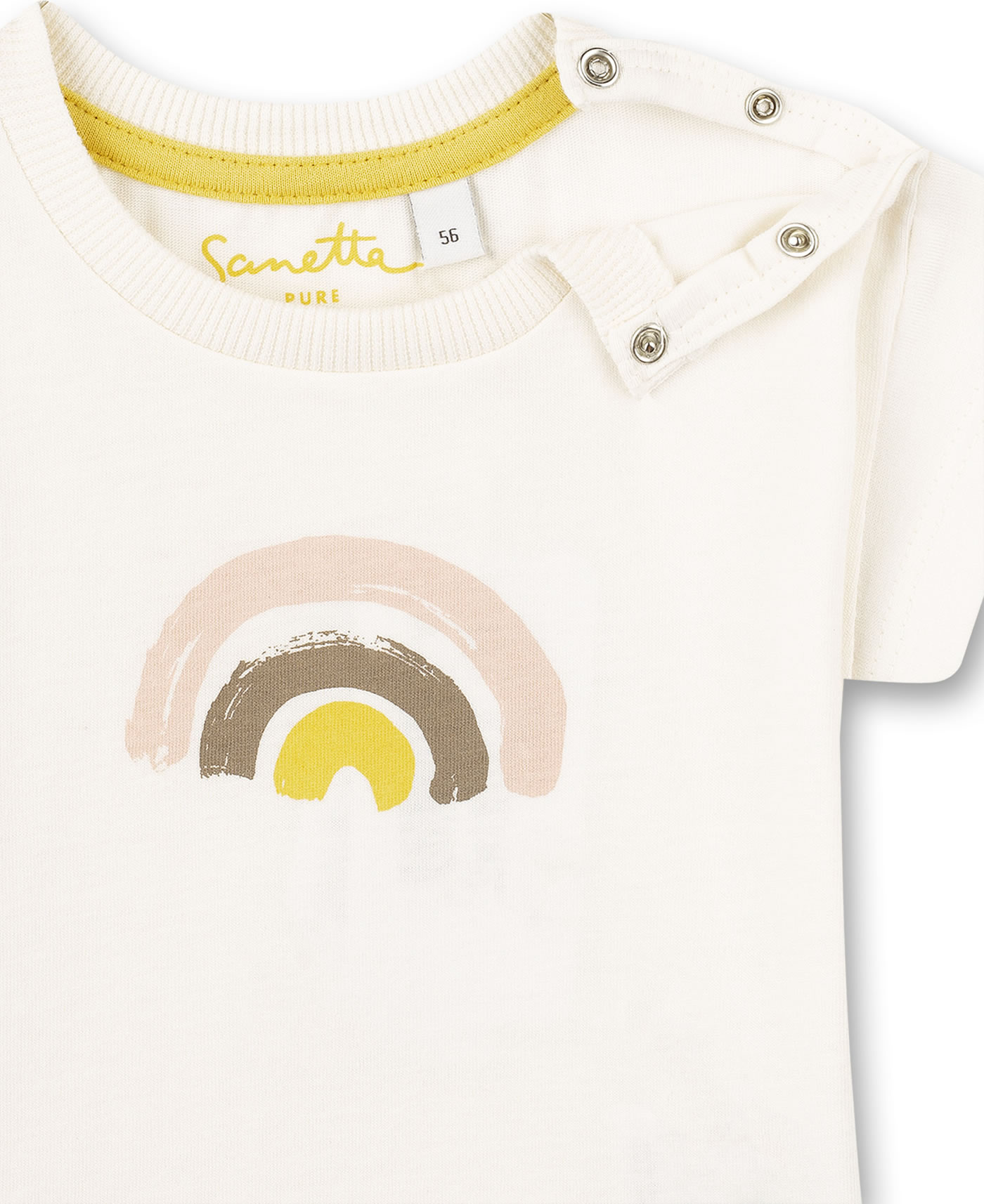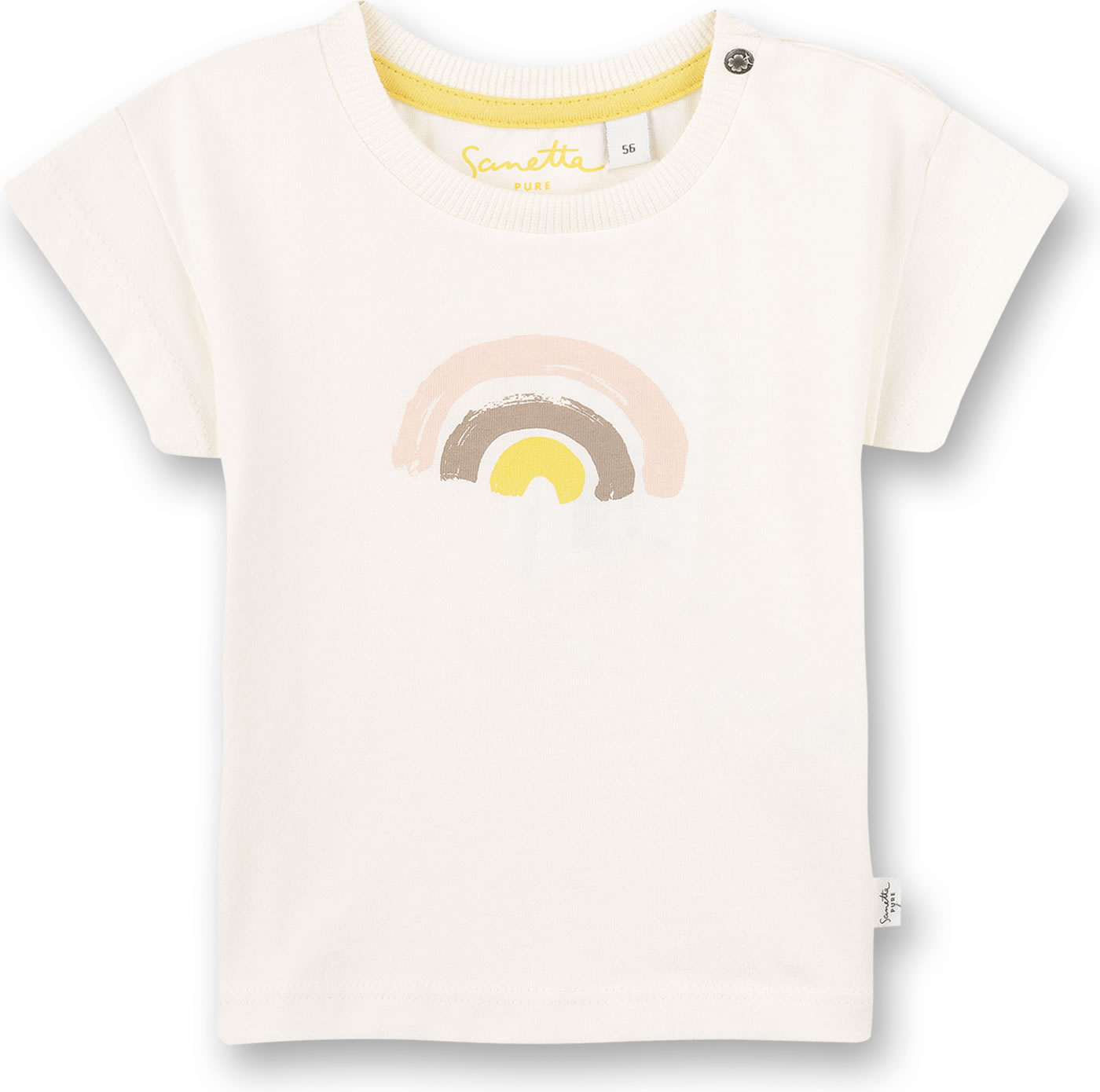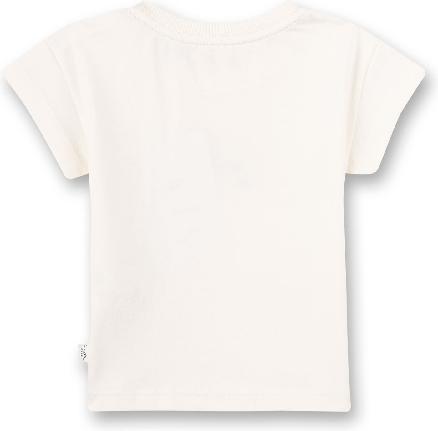 Sommerliches Kurzarm-Shirt in creme-weiß mit schönem Print auf der Brust von SANETTA PURE für Mädchen. Das gemütliche T-Shirt aus 100 % Bio-Baumwolle ist ein tolles Kleidungsstück für die warmen Tage des Jahres, das sich prima kombinieren lässt. Druckknöpfe an der linken Schulter erleichtern das An- und Ausziehen.