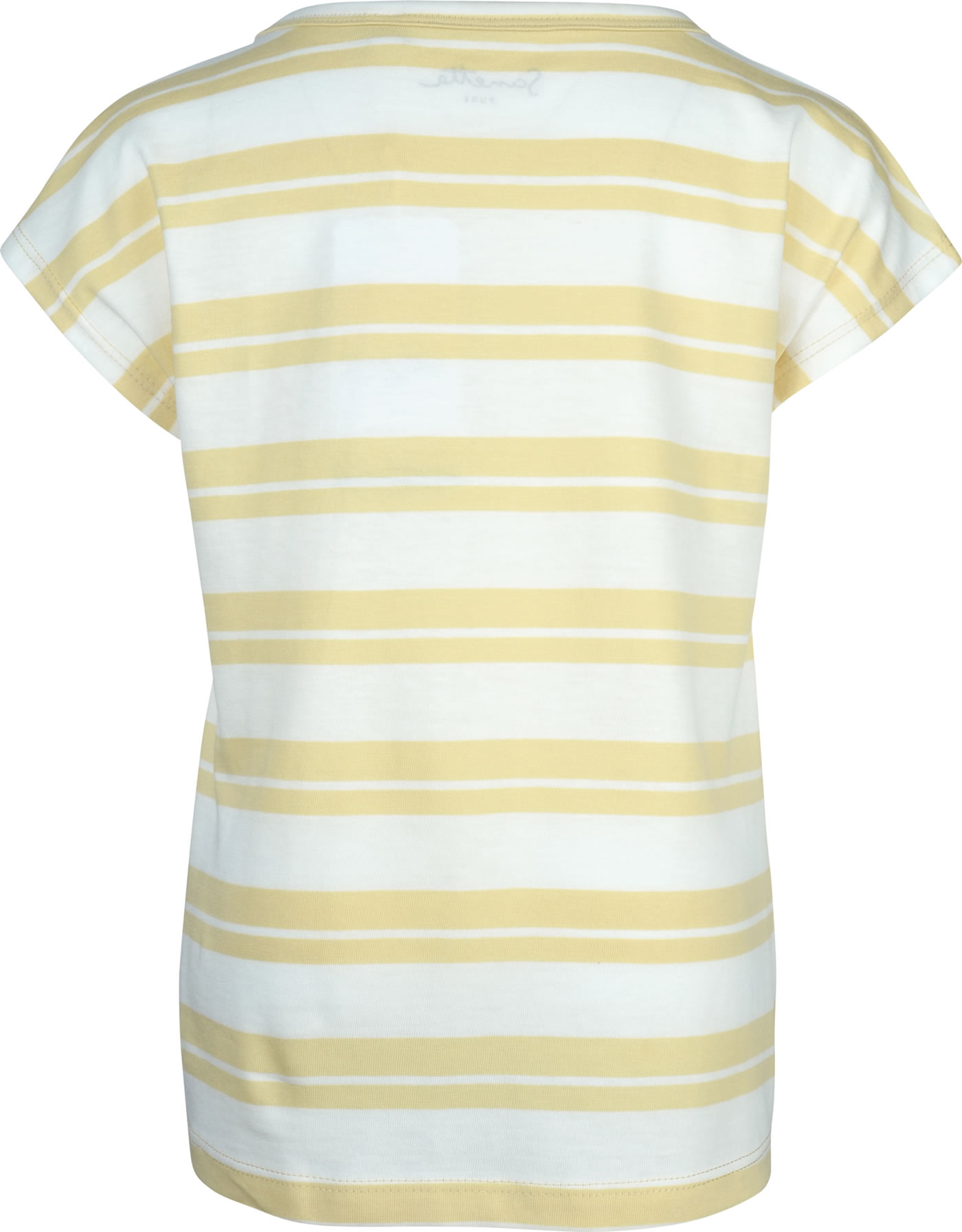 Sommerliches Kurzarm-Shirt mit lockerem Schnitt in gelb und weiß gestreift von SANETTA PURE für Mädchen. Der leichte Baumwollstoff aus 100 % organischer Baumwolle liegt angenehm auf der Haut.