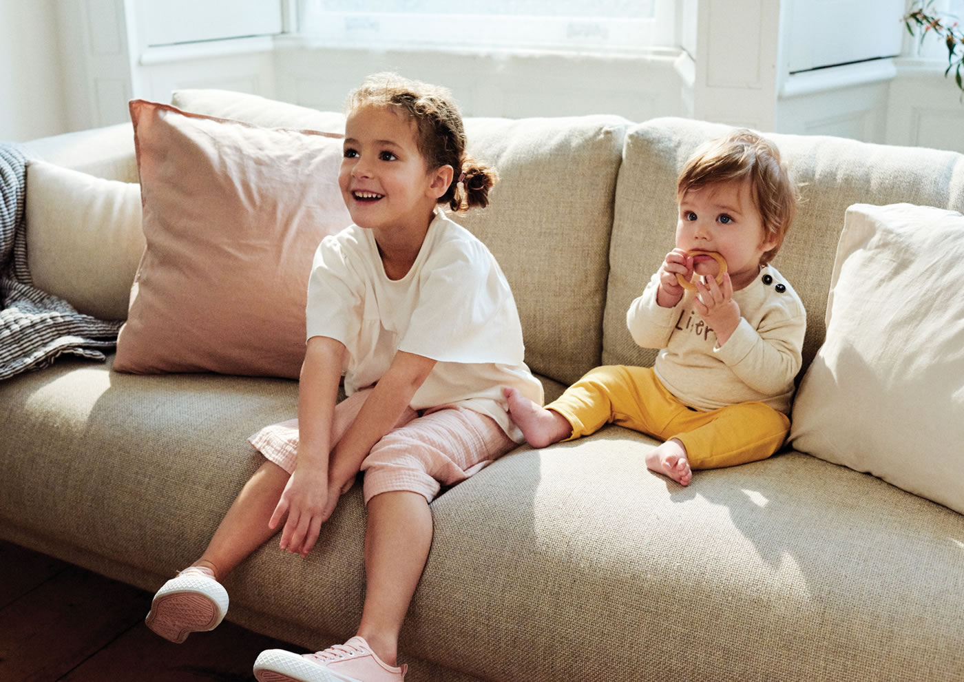 Sommerliche Baby-Hose aus weicher Bio-Baumwolle mit einem bequemen Bund von SANETTA PURE für Mädchen und Jungen. Ein schönes Detail sind die drei Zierknöpfe auf der Vorderseite. Das angenehme Material in Musselin-Qualität aus Bio-Baumwolle und der weite Schnitt machen diese Baby-Hose zu einem Lieblingsstück an warmen Tagen.