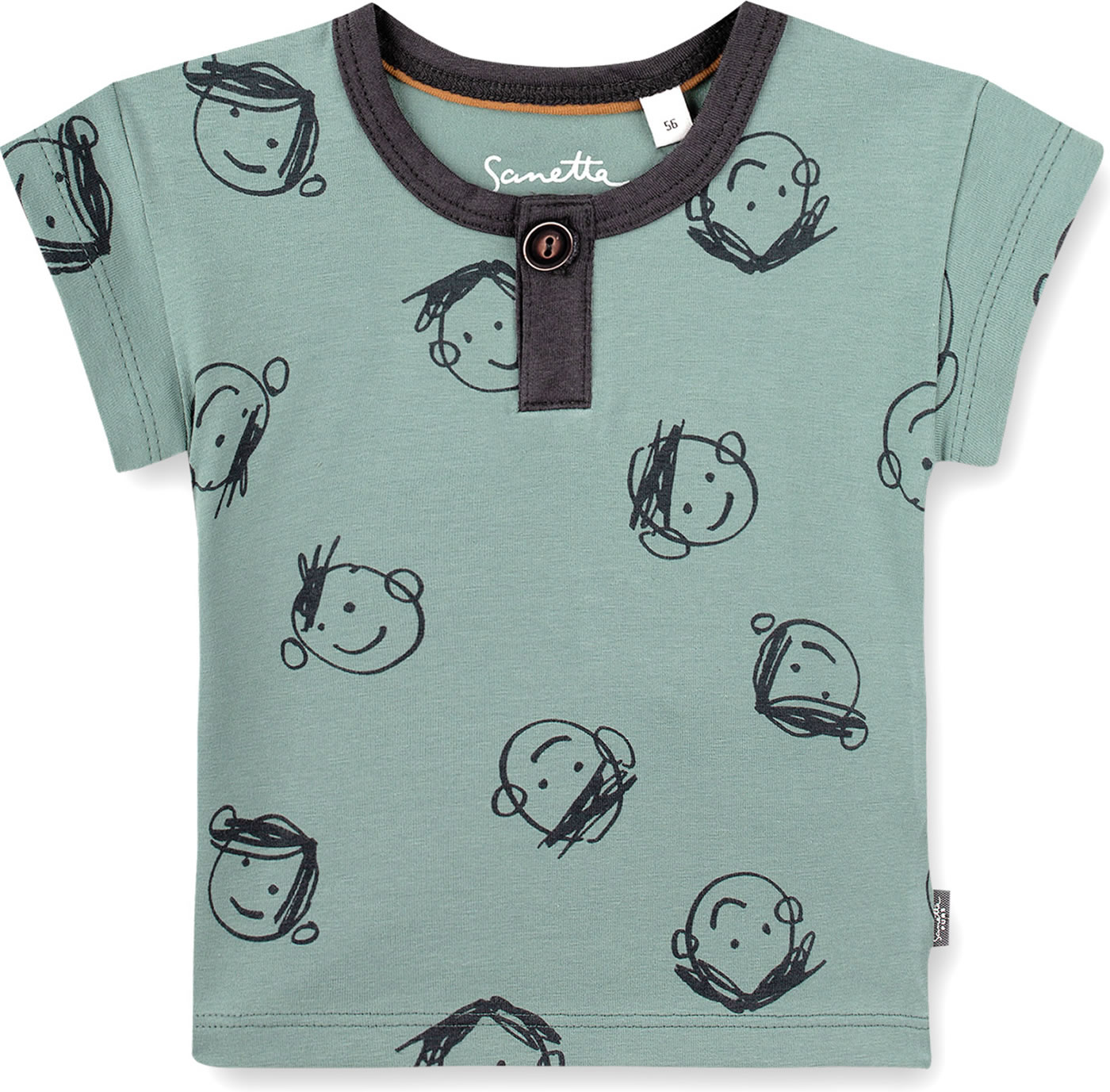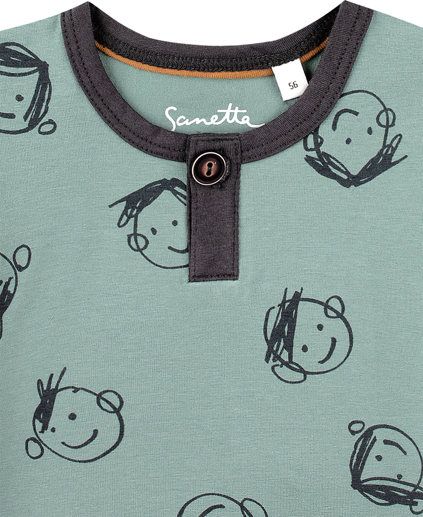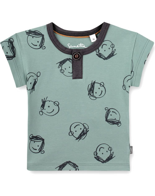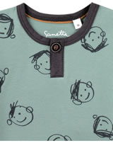 Schönes Kurzarm-Shirt in blau mit lustigem Allover-Print und leicht überschnittenen Schultern von SANETTA PURE für Jungen. Ein schönes Detail ist der abgesetzte Halsausschnitt mit Steg und kleinem Knopf. Das gemütliche T-Shirt aus 100 % Bio-Baumwolle ist ein tolles Kleidungsstück für die warmen Tage des Jahres, das sich prima kombinieren lässt.