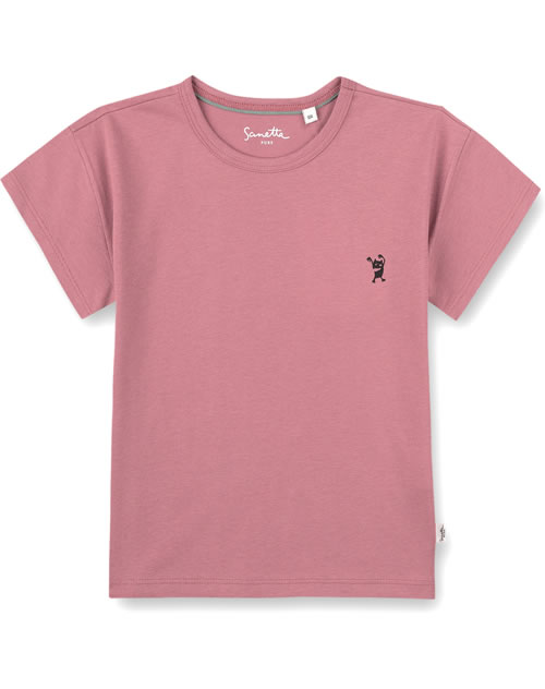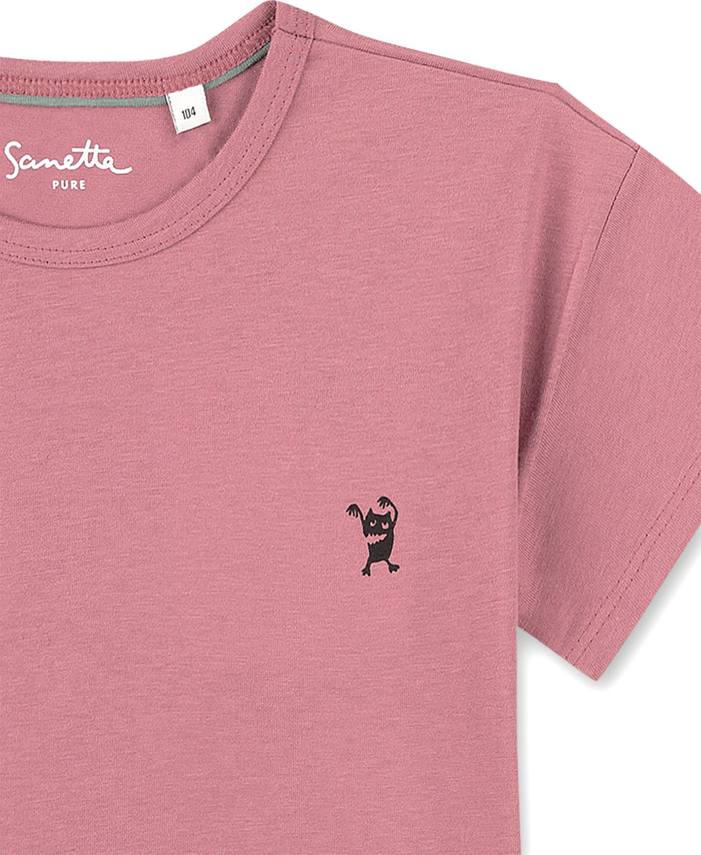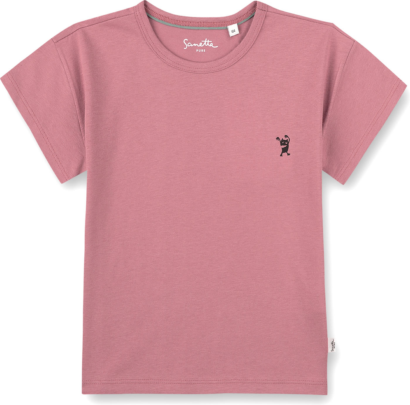 Schönes Kurzarm-Shirt in rosa mit kleinem Monster-Print auf der linken Brust von SANETTA PURE für Mädchen. Das gemütliche T-Shirt aus 100 % Bio-Baumwolle ist ein tolles Kleidungsstück für die warmen Tage des Jahres, das sich prima kombinieren lässt.
