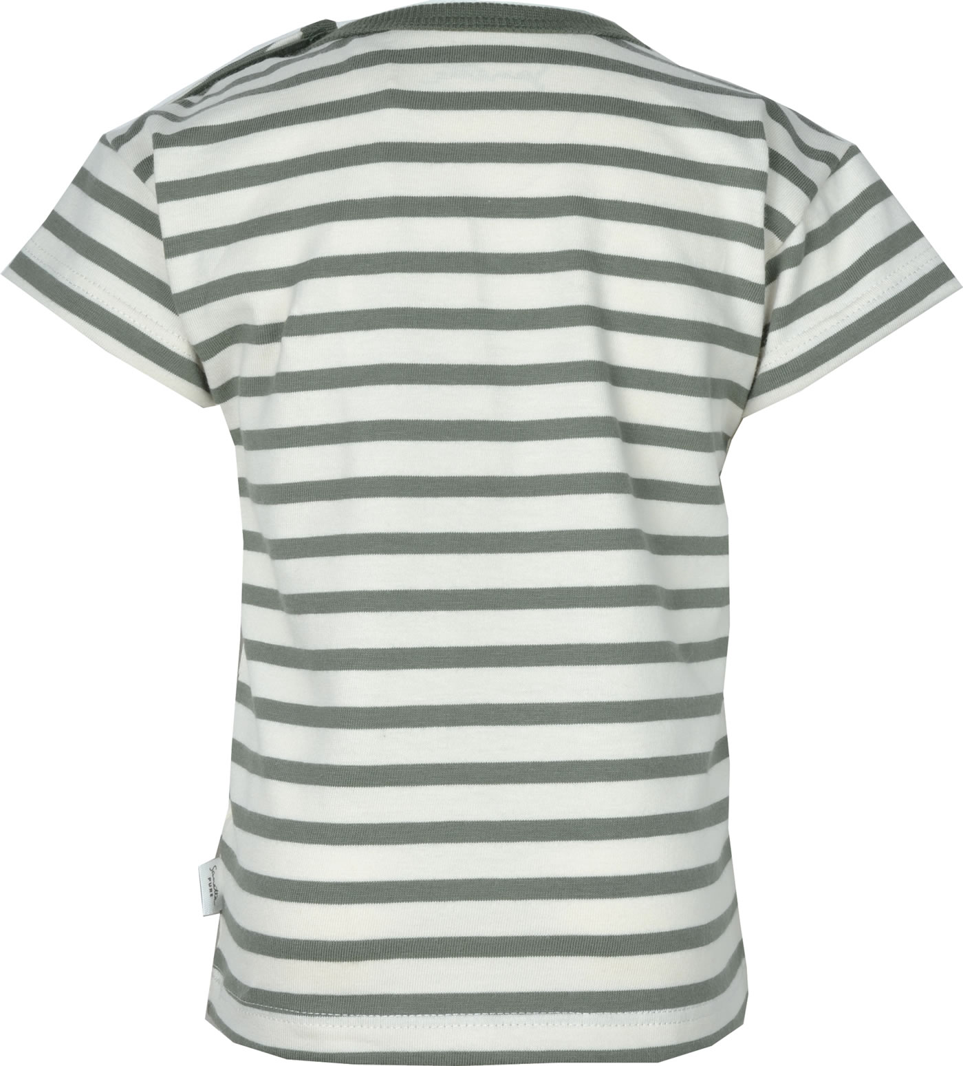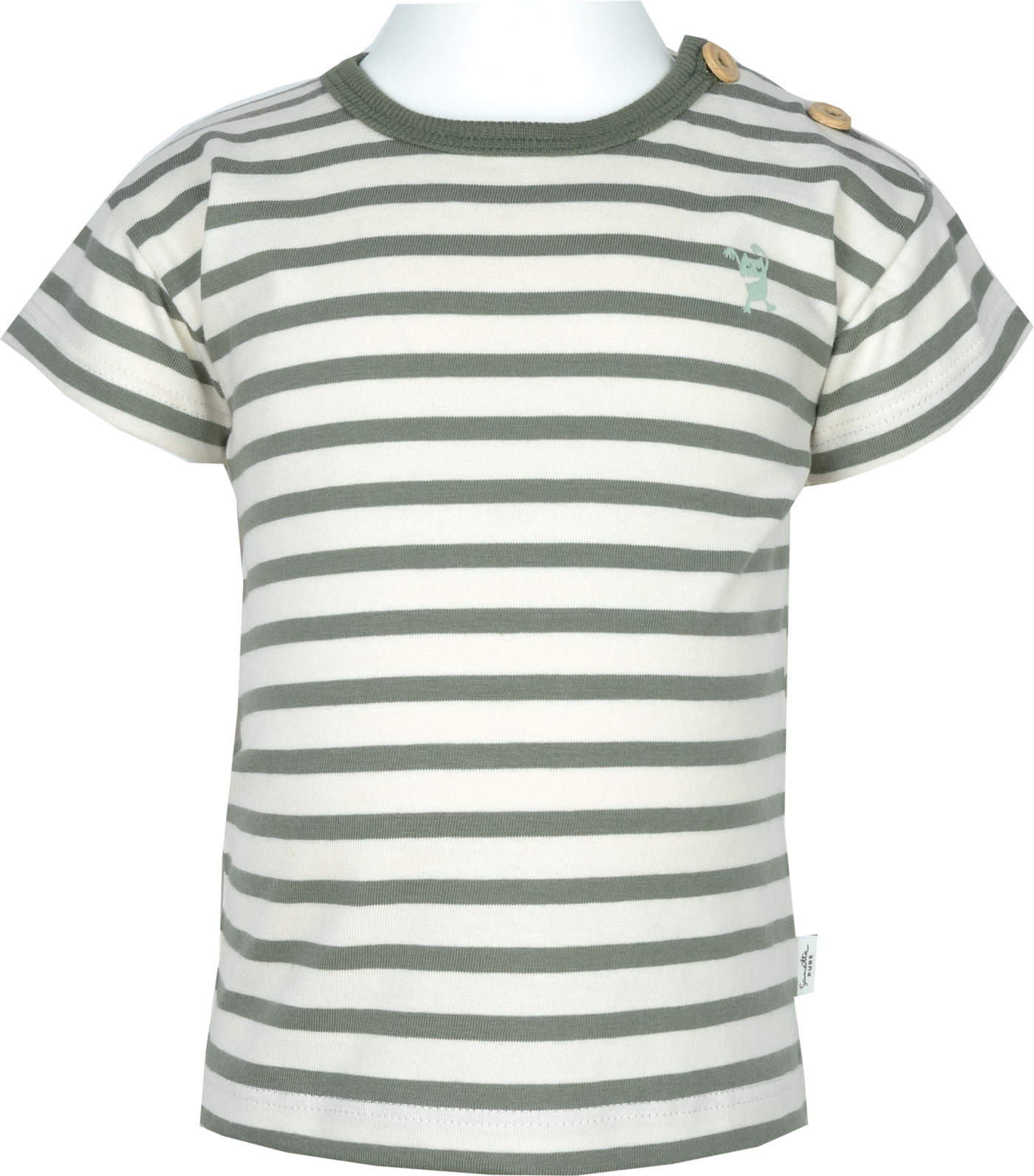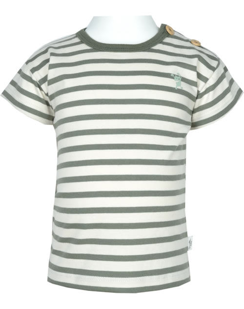 Sommerliches Kurzarm-Shirt in oliv und weiß gestreift mit kleinem Monster-Print auf der Brust von SANETTA PURE für Jungen. Das gemütliche T-Shirt aus 100 % Bio-Baumwolle ist ein tolles Kleidungsstück für die warmen Tage des Jahres, das sich prima kombinieren lässt. Bis Größe 92 erleichtern Knöpfe an der linken Schulter das An- und Ausziehen.