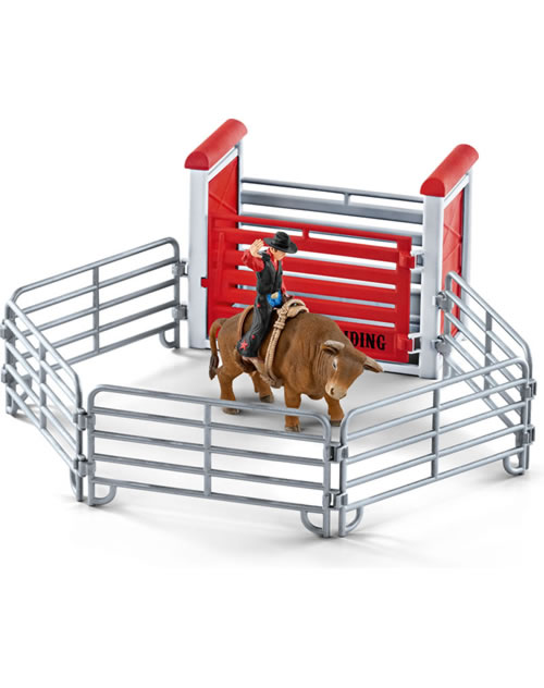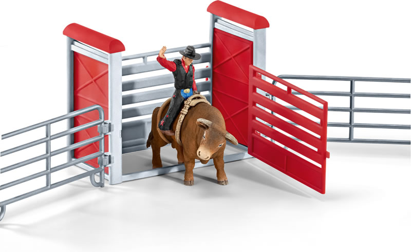 Inhalt: 1 x Rodeo Bulle, 1 x Cowboy, 1 x Seil, 1 x Startbox, 5 x Zaun, 1 x Flankengurt