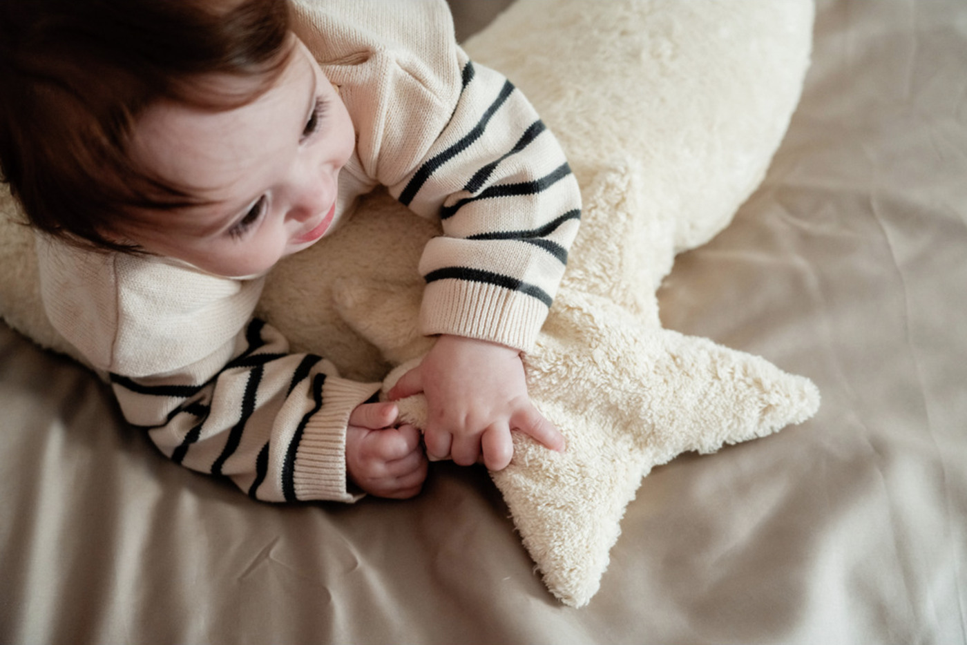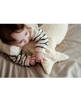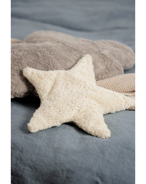 Dieser schöne Stern von Senger Natur ist nicht nur Schmusekissen, sondern Wärme- und Kühlkissen zugleich. Der Bezug aus Bio-Baumwoll-Plüsch (kbA) macht ihn weich und anschmiegsam. Per Reißverschluss gelangt man an das herausnehmbare Baumwollkissen, das mit Kirschkernen gefüllt ist. Dieses kann im Backofen oder auf der Heizung erwärmt werden.