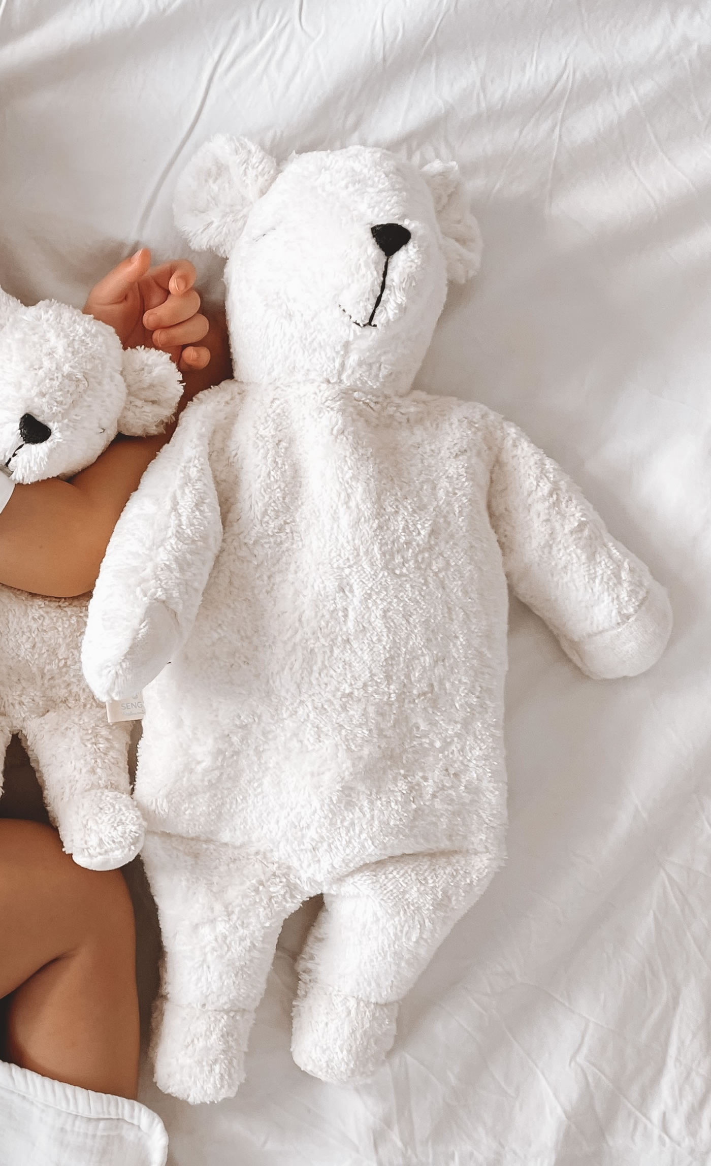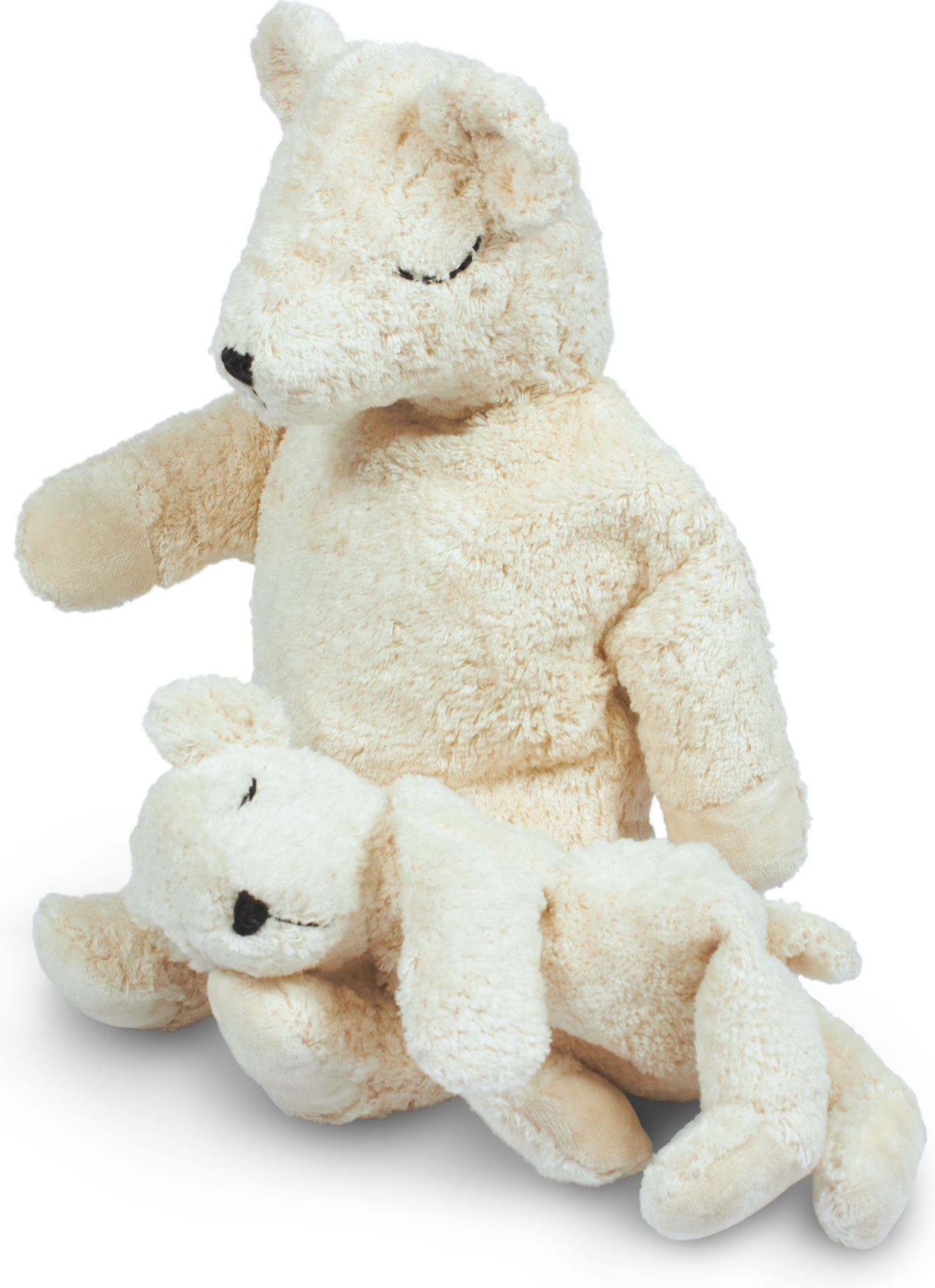süße schlafende Eisbär von Senger Natur ist nicht nur Schmusetier, sondern Wärme- und Kühlkissen zugleich. Der Bezug aus