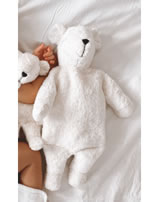 Bio-Baumwoll-Plüsch (kbA) macht ihn weich und anschmiegsam. Durch die Öffnung am Bauch gelangt man an das herausnehmbare Baumwollkissen, das bei den großen Kuscheltieren