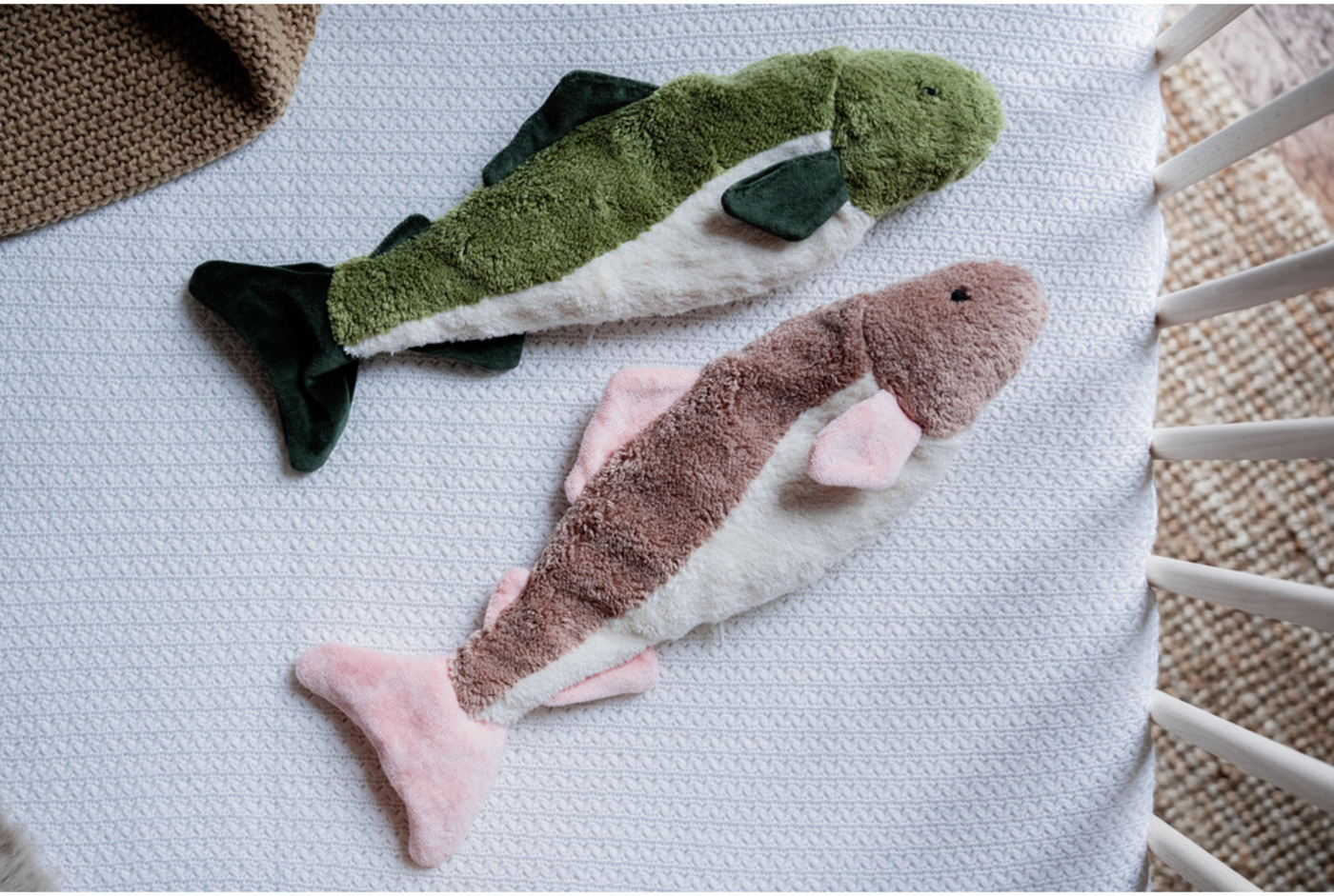 Dieser süße Fisch von Senger Natur ist nicht nur Schmusetier, sondern Wärme- und Kühlkissen zugleich. Der Bezug aus Bio-Baumwoll-Plüsch (kbA) macht ihn weich und anschmiegsam. Per Reißverschluss gelangt man an das herausnehmbare Baumwollkissen, das mit Kirschkernen gefüllt ist. Dieses kann im Backofen oder auf der Heizung erwärmt werden.