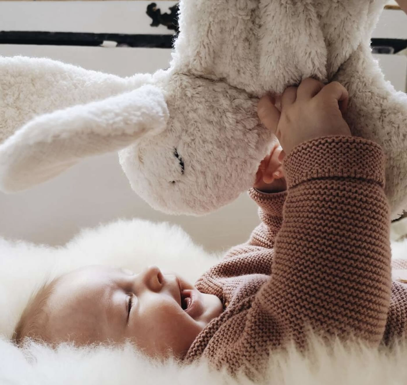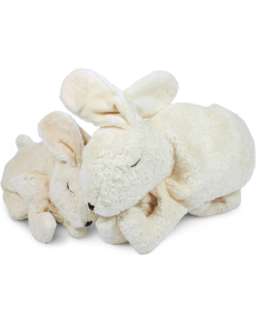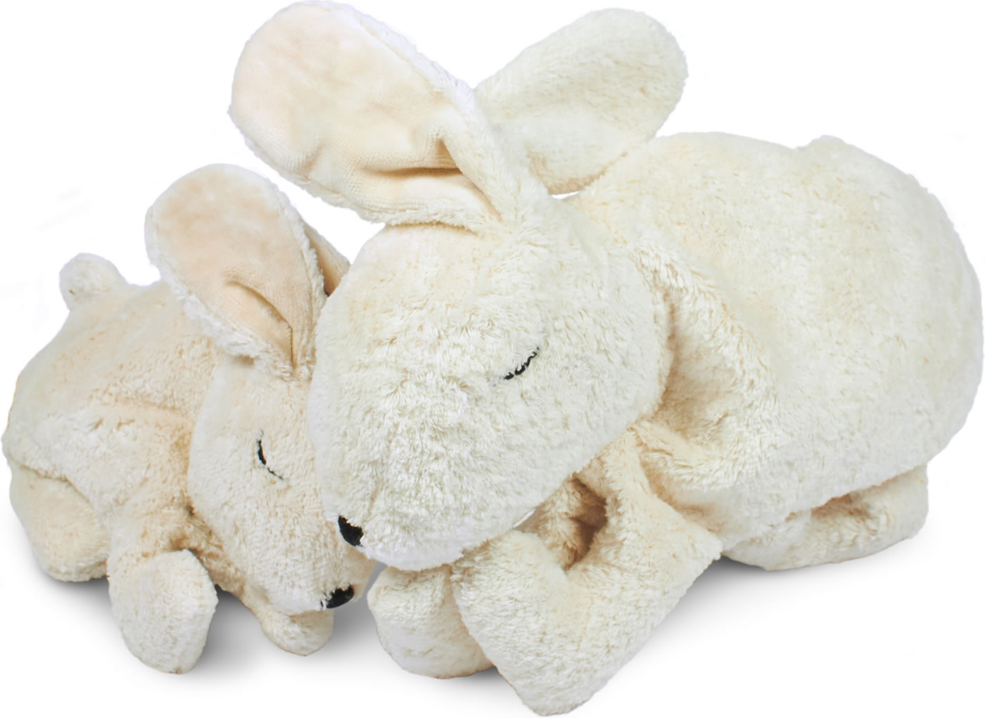 süße schlafende Hase von Senger Natur ist nicht nur Schmusetier, sondern Wärme- und Kühlkissen zugleich. Der Bezug aus