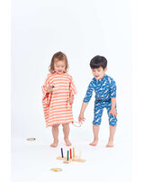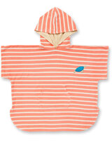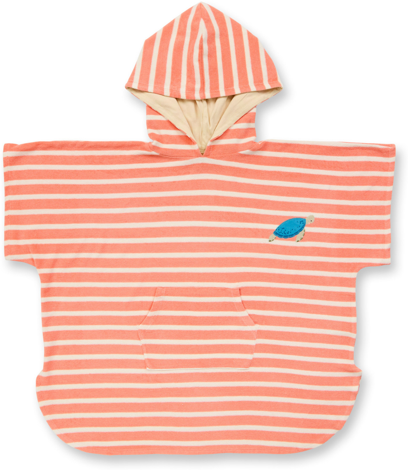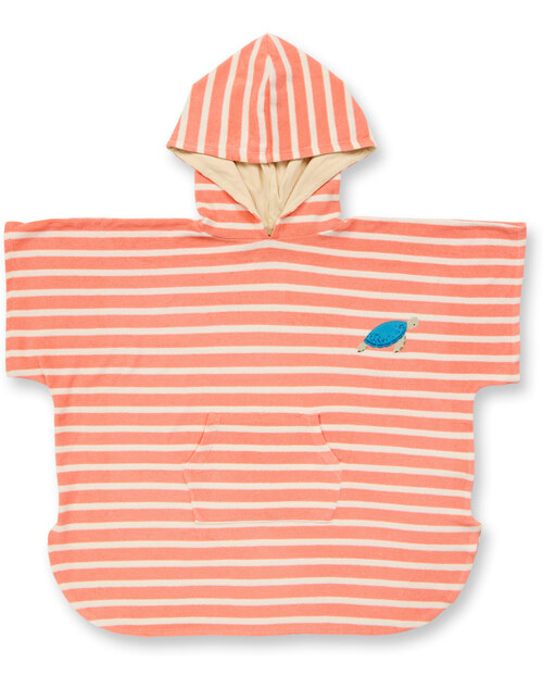 Sense Organics Bade-Poncho aus Baumwoll-Frotte mit Kapuze "ALVI" - Peach Stripes + Turtle