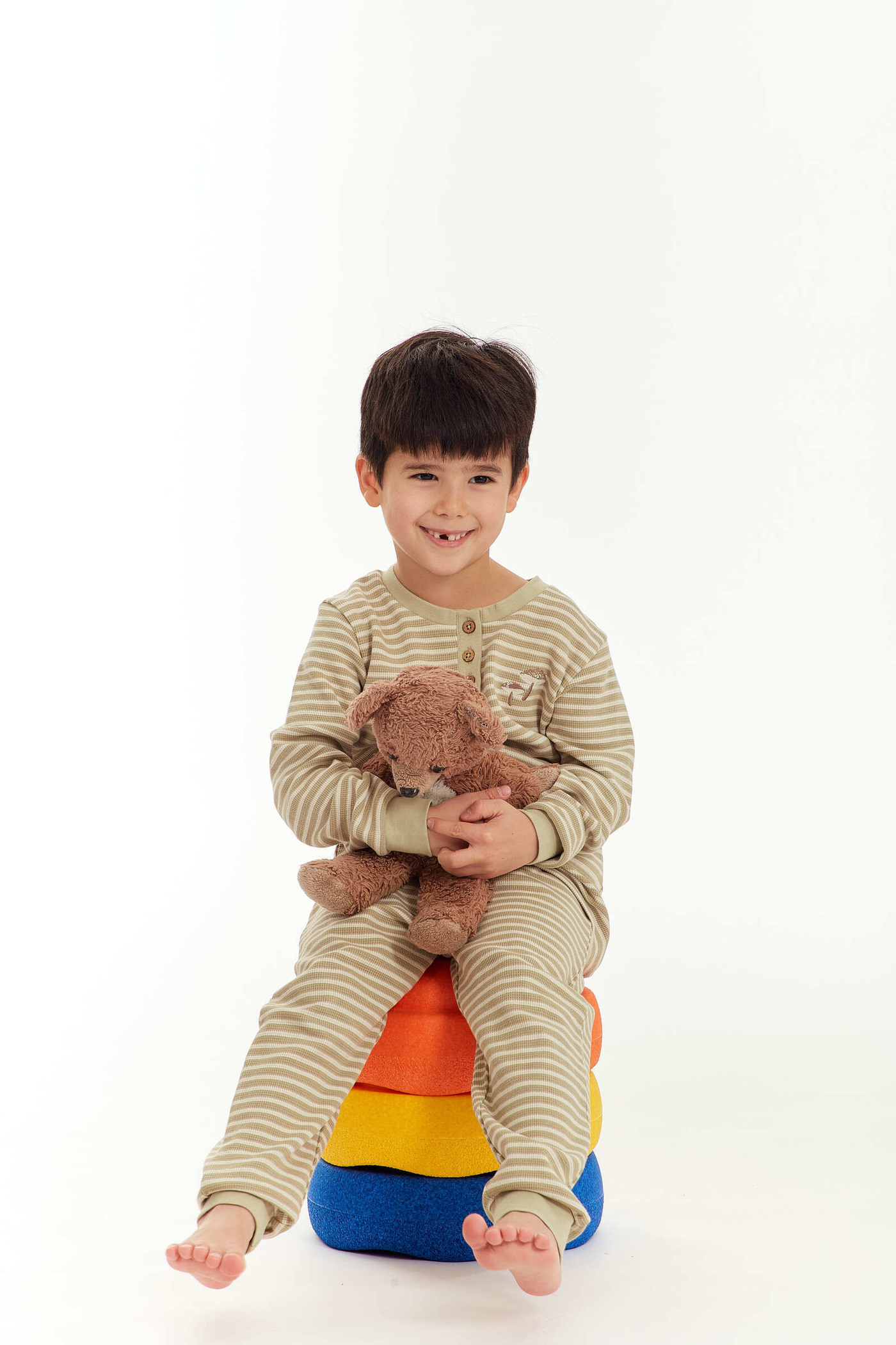Sense Organics Kids-Pyjamaset 'Junis' aus Bio-Baumwolle - Light Reed Stripes + Mushroom
