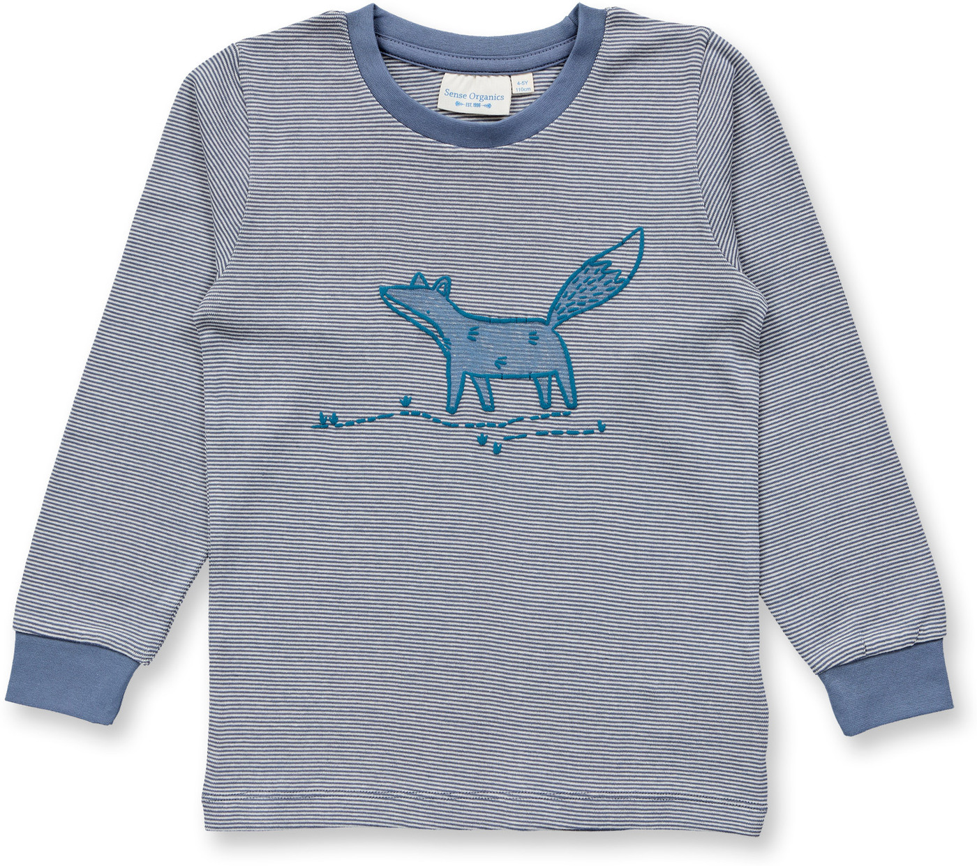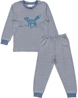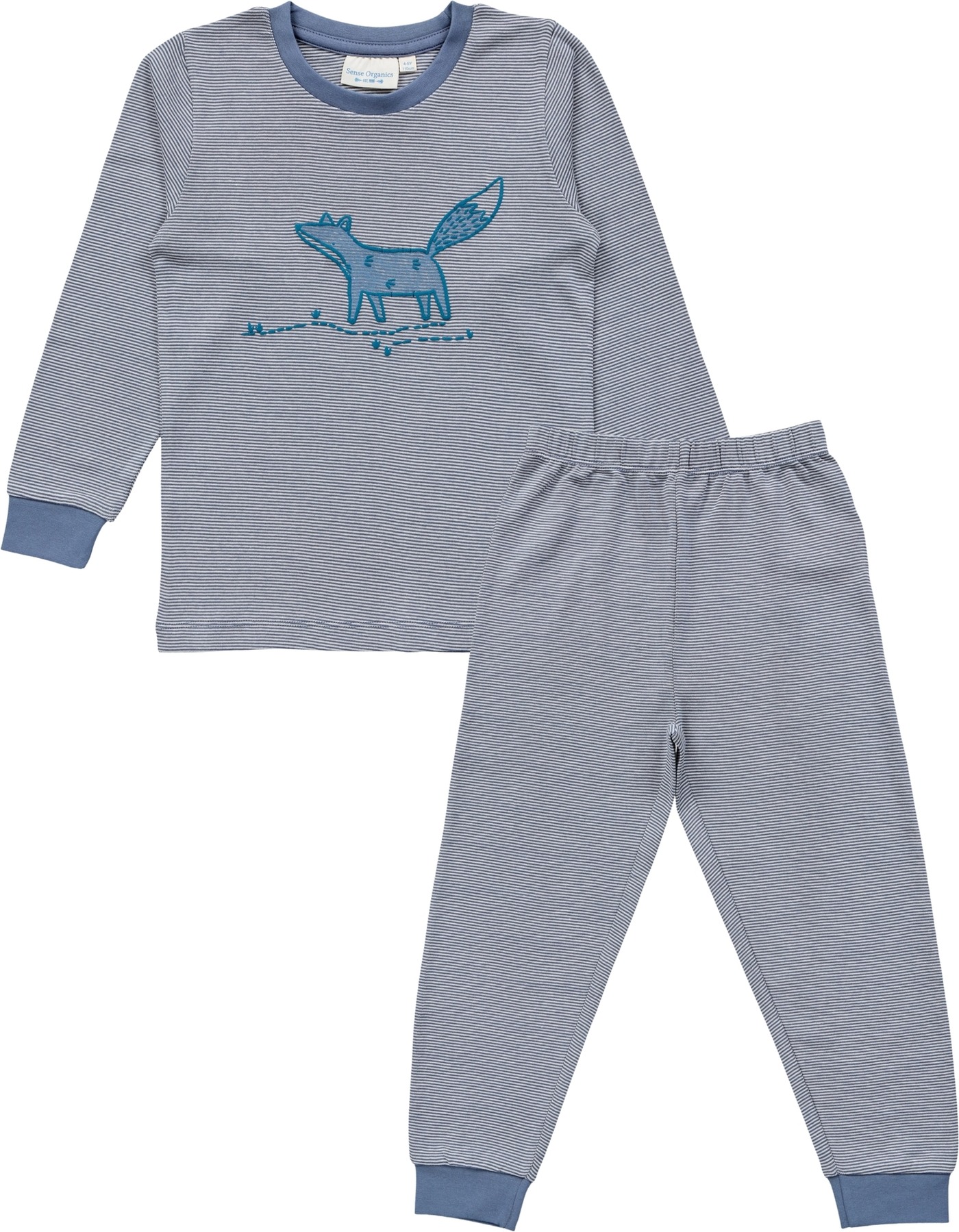 Sense Organics Kids-Pyjamaset 'Long John' aus Bio-Baumwolle - Blue-Grey Stripes Small + Fox