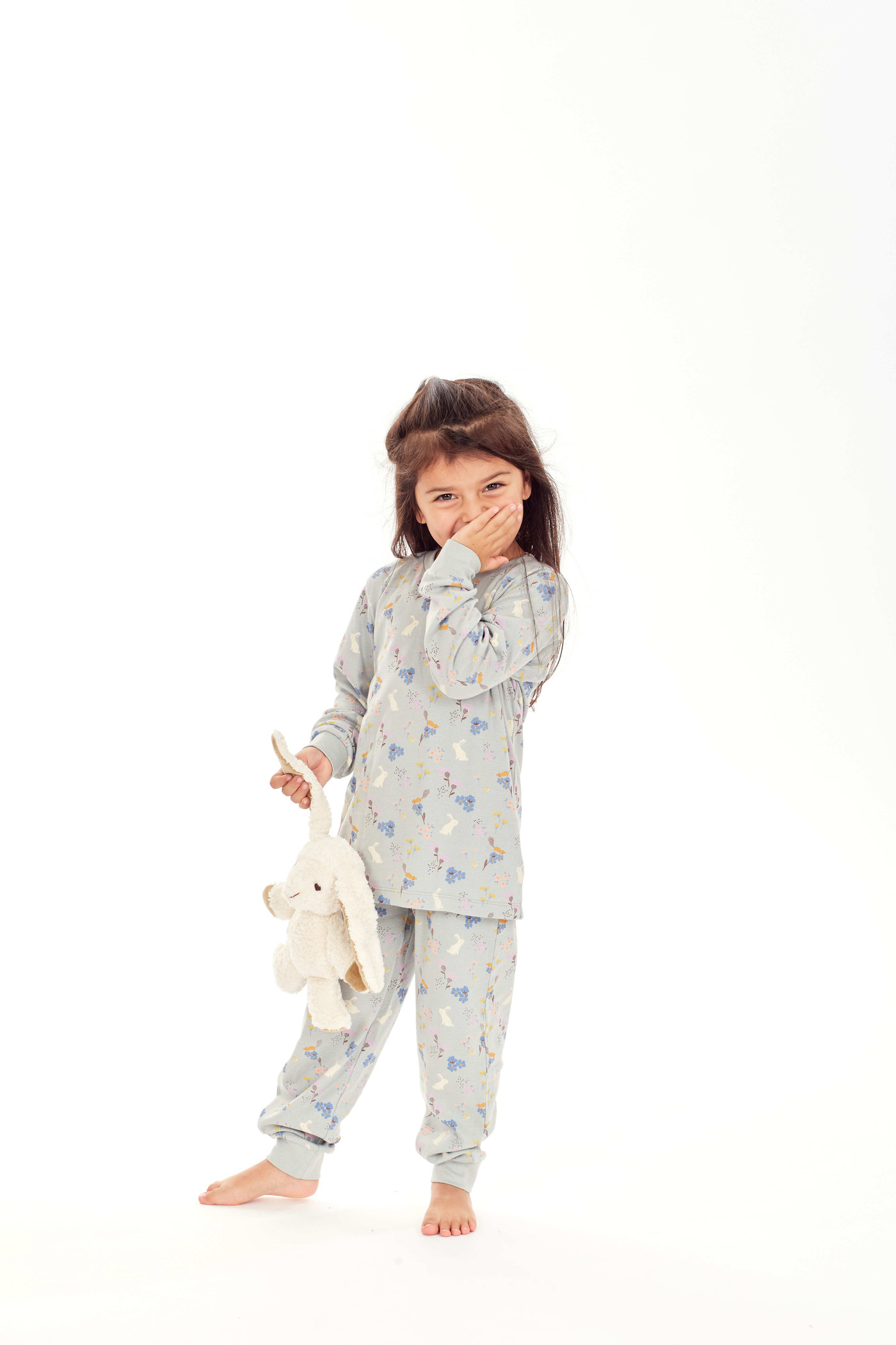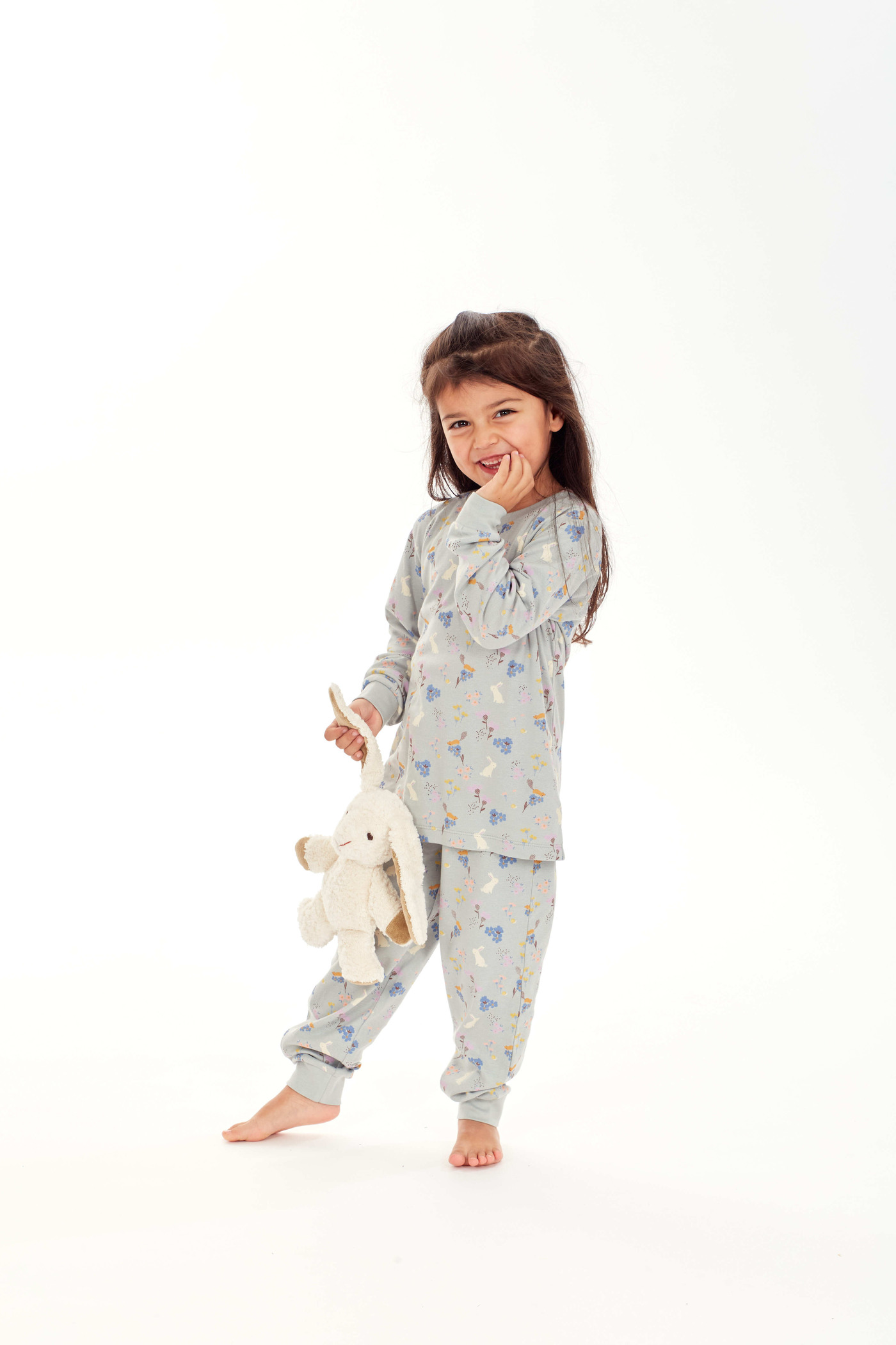 Sense Organics Kids-Pyjamaset 'Long John' aus Bio-Baumwolle - Bunnies Icegrey