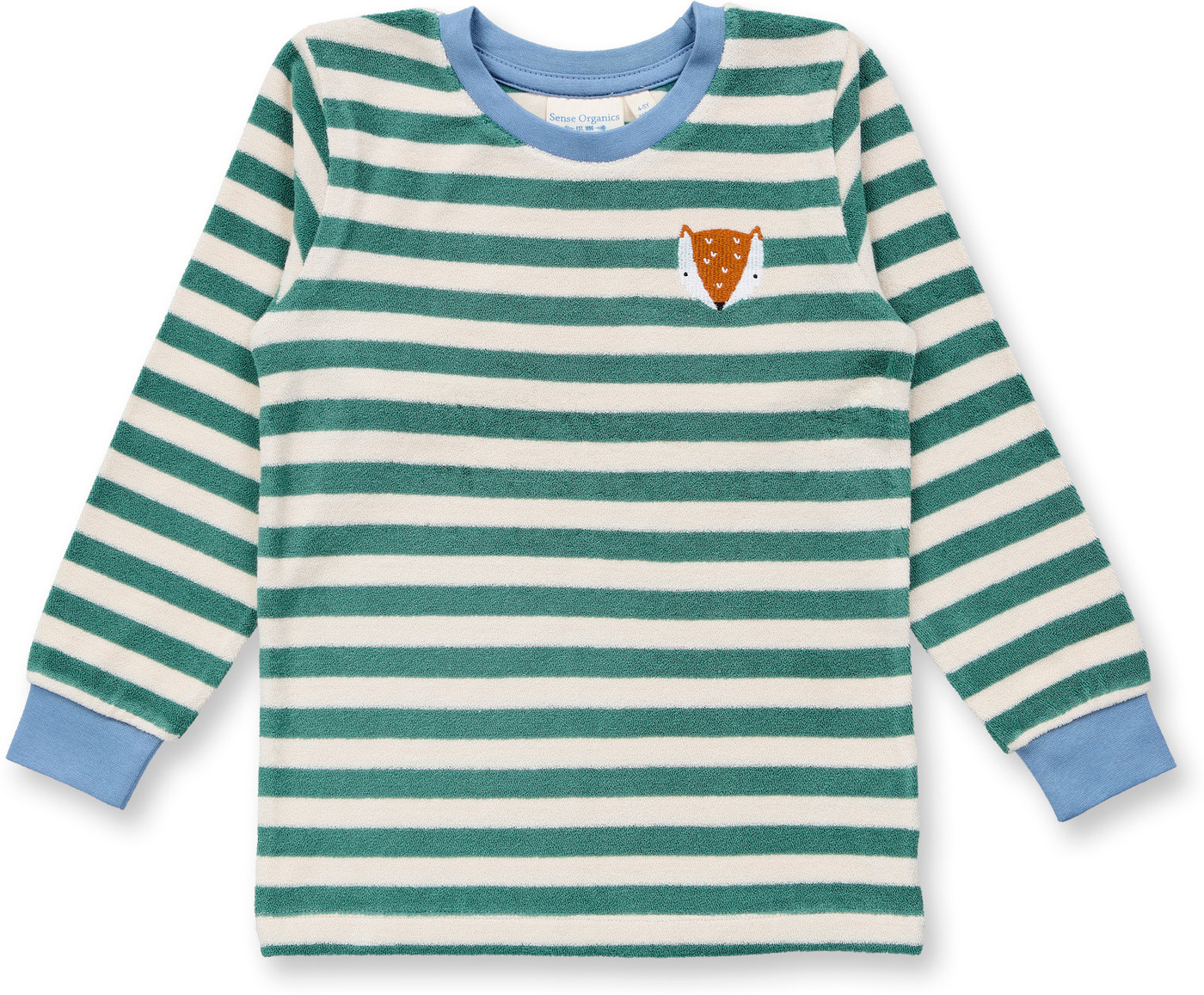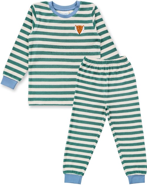 Sense Organics Kids-Pyjamaset 'Long John' aus Bio-Baumwolle - Green Teal Stripes + Fox