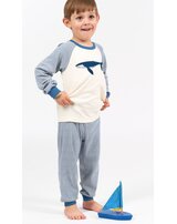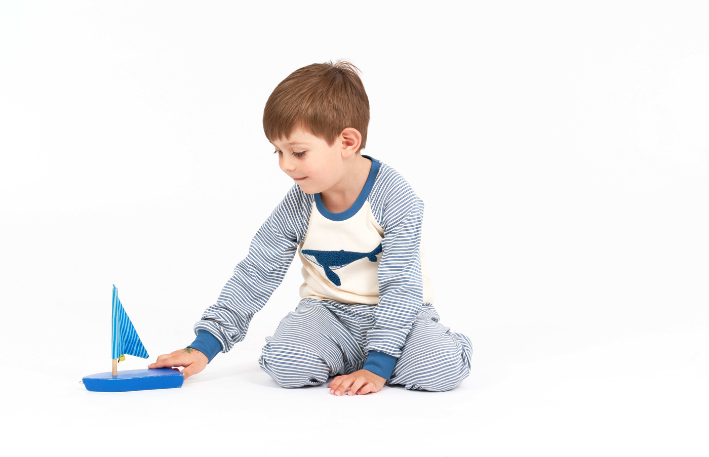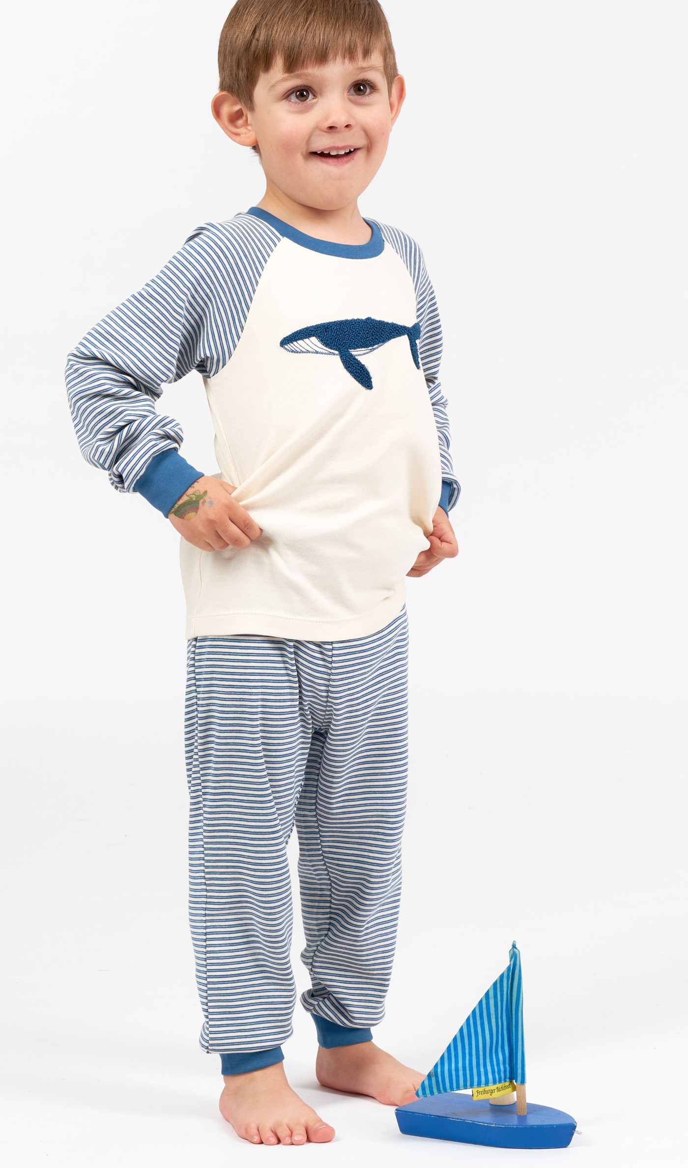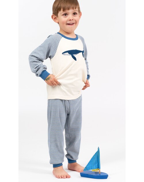Sense Organics Schlafanzug/Pyjama aus Bio-Baumwolle lang "JOHN" - Ocean Blue Stripes + Whale