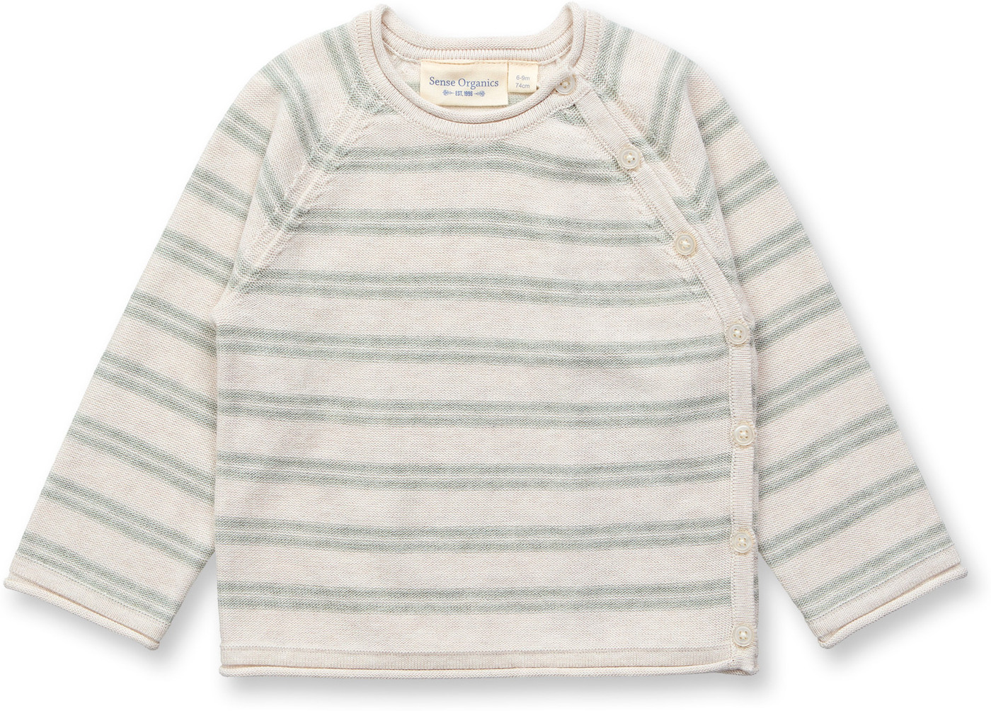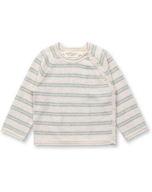 Sense Organics Strick-Wickeljacke/Kimono aus Bio-Baumwolle "PICASSO" - Cream-Light Sage Stripes