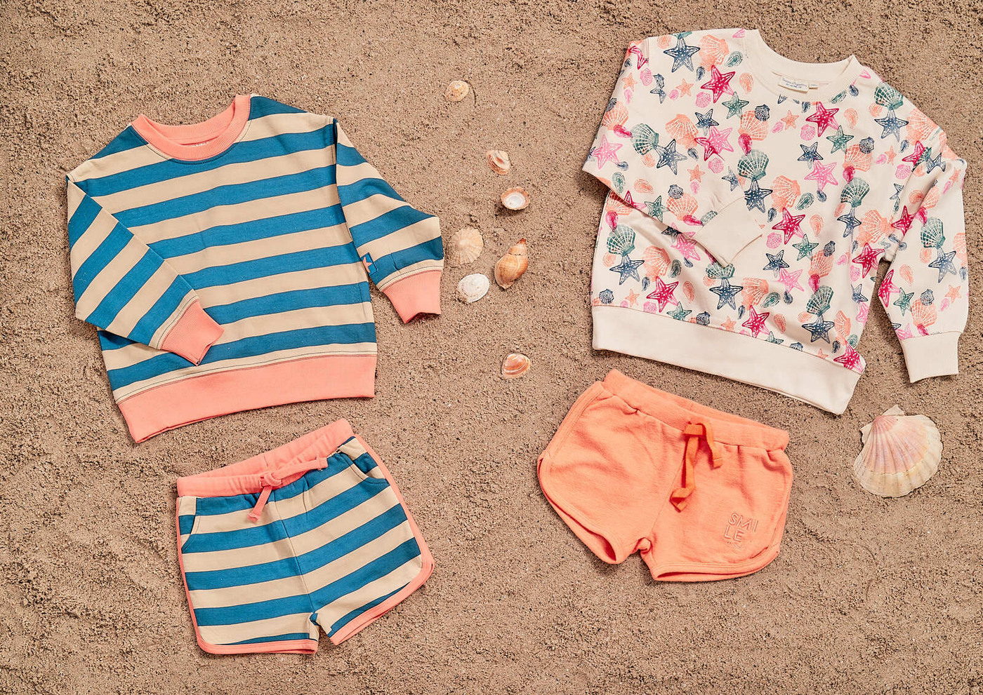 Sense Organics Sweat-Shorts aus Bio-Baumwolle "MARLEN" - Ocean Blue-Sand Stripes