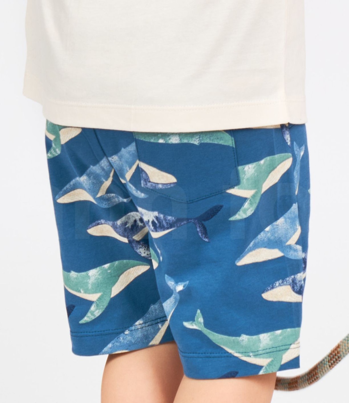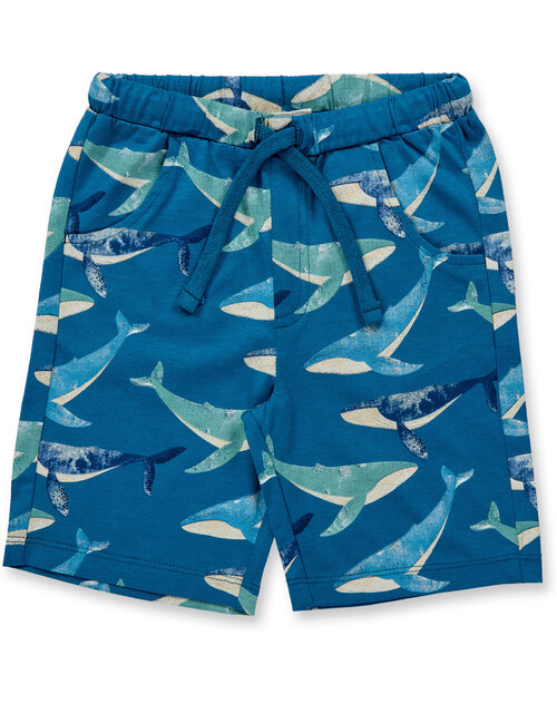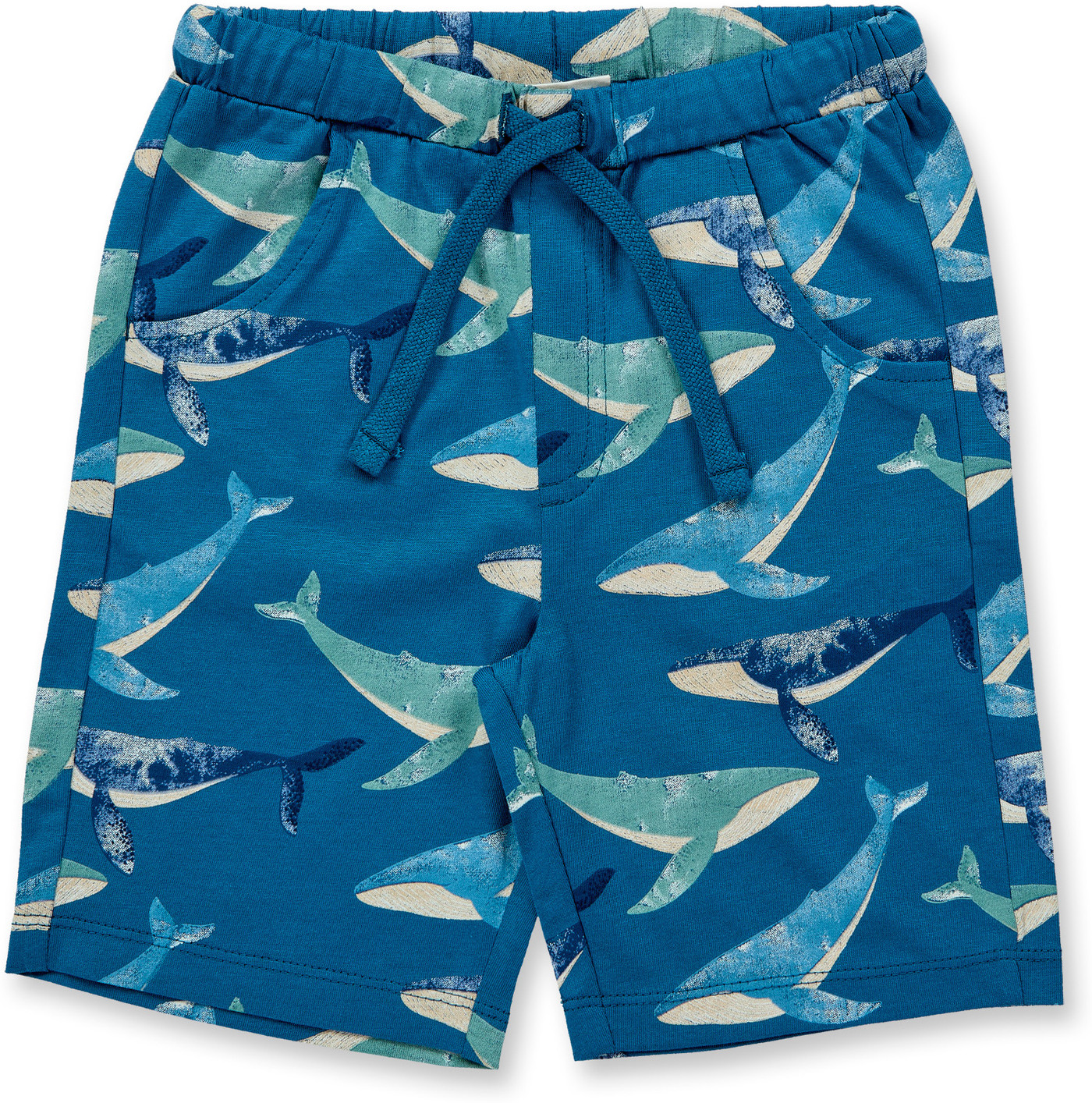 Sense Organics Sweat-Shorts mit Walen aus Bio-Baumwolle "KHAN" - Whales Ocean Blue
