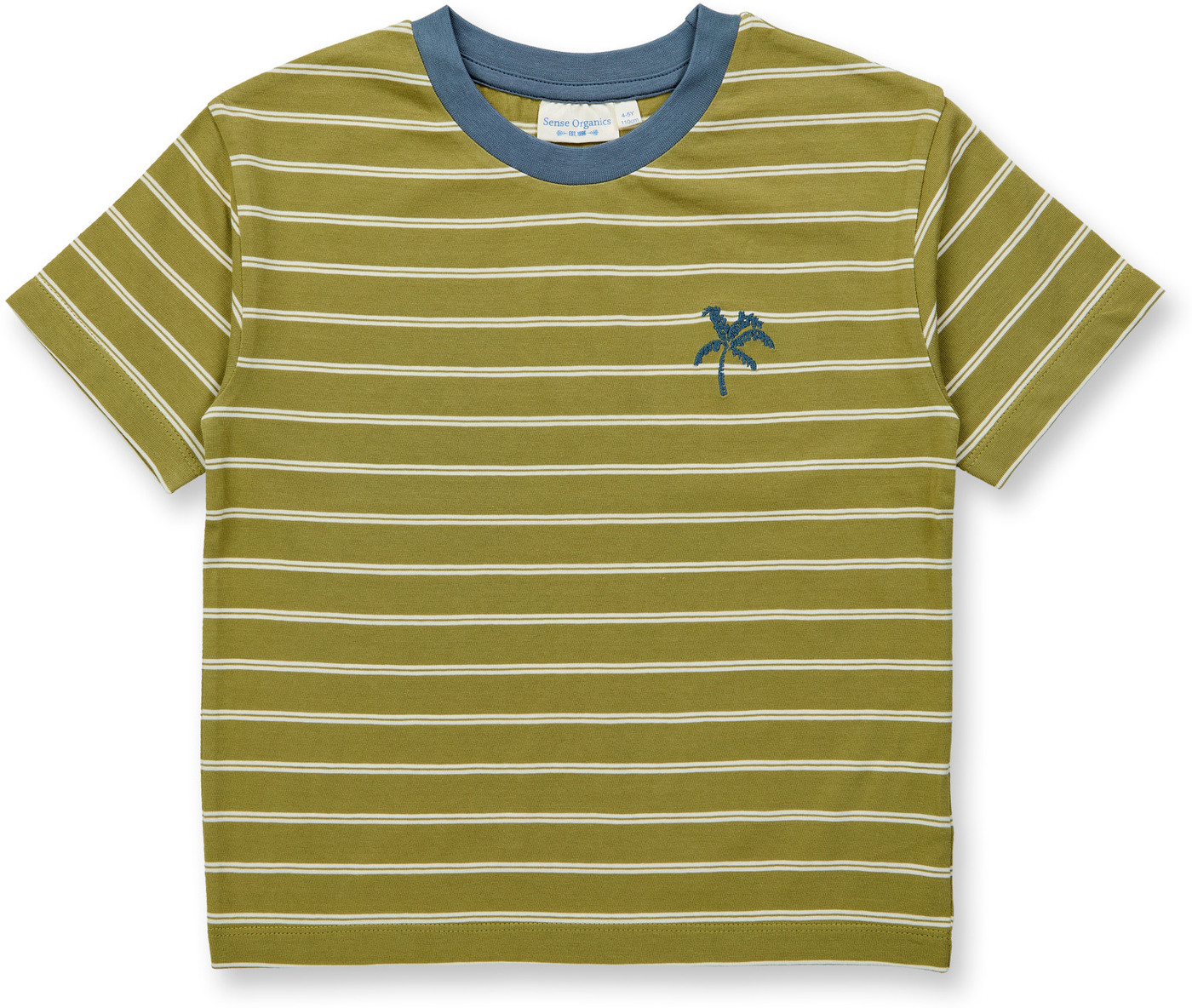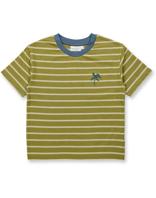 Sense Organics T-Shirt mit Palmen-Bestickung aus Bio-Baumwolle "ANTON" - Olive Stripes + Palm
