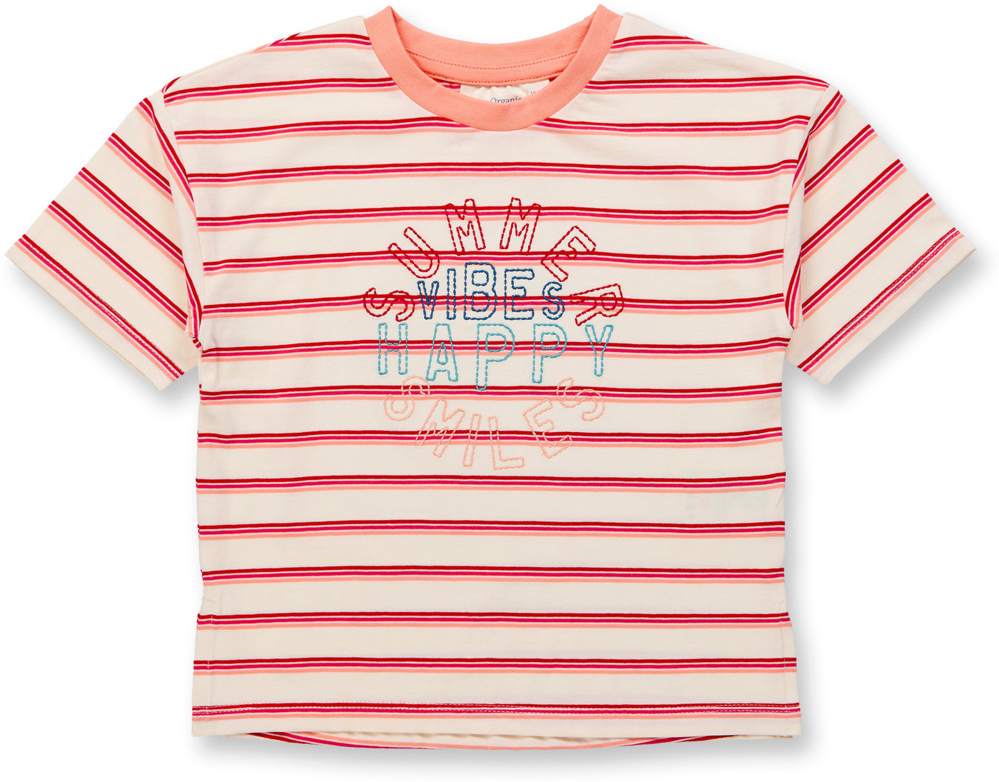 Dieses hübsche und coole Shirt wird mit dem aufgestickten Spruch "Summer Vibes Happy Smiles"garantiert zum neuen Lieblingsteil :)