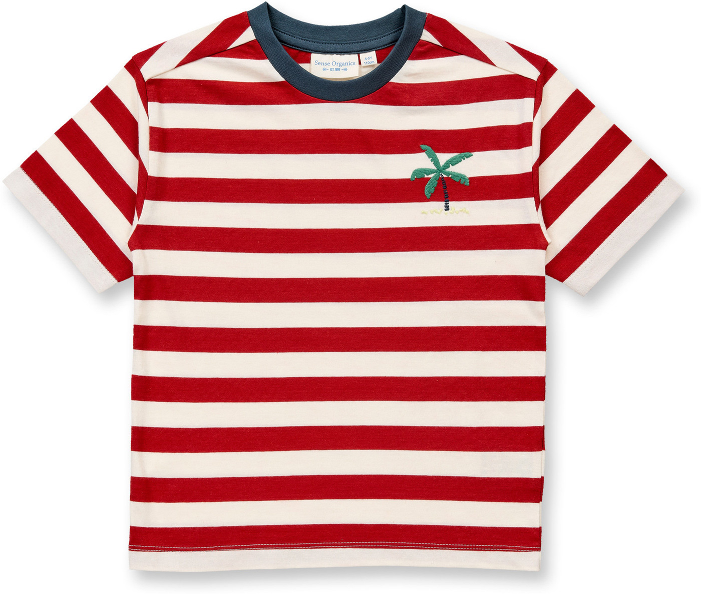 Sense Organics T-Shirt 'Oswin' mit aufgestickter Palme aus Bio-Baumwolle - Rusty Red Stripes + Palm